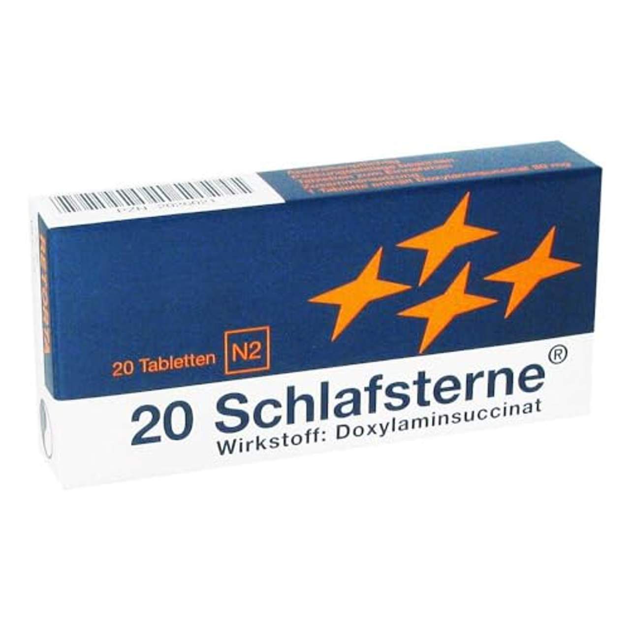 Retorta Schlafsterne TablettenWas sind Schlafsterne und wofür werden sie angewendet? Schlafsterne sind ein Arzneimittel mit müde-machenden Eigenschaften, das zu den sog. Antihista-minika / Sedativa gehört. Schlafsterne werden angewendet bei medikamentös behandlungsbedürftigen Ein- und Durchschlaf-störungen. Hinweis: Nicht alle Schlafstörungen bedürfen einer medikamentösen Therapie. Oftmals sind sie Ausdruck körperlicher oder seelischer Erkrankungen und können durch andere Maßnahmen oder eine Therapie der Grundkrankheit beeinflusst werden.Deshalb sollte bei länger anhaltenden Schlafstörungen keine Dauerbehandlung mit Schlafsternen erfolgen, sondern der behandelnde Arzt aufgesucht werden. Wie sind Schlafsterne einzunehmen? Nehmen Sie dieses Arzneimittel immer genau wie in dieser Packungsbeilage beschrieben bzw. genaunach der mit Ihrem Arzt oder Apotheker getroffenen Absprache ein.Bitte fragen Sie bei Ihrem Arztoder Apotheker nach, wenn Sie sich nicht sicher sind. Soweit nicht anders verordnet, nehmen Erwachsene 1-2 Tabletten täglich vor dem Schlafengehen. Bei stärkeren Schlafstörungen können als Höchstdosis 2 Tabletten (entsprechend 60 mg Doxylaminsuccinat)eingenommen werden. Art der Anwendung Die Tabletten werden unzerkaut mit einem Glas Wasser ½ bis 1 Stunde vor dem Schlafengeheneingenommen. Es ist darauf zu achten, dass nach der Einnahme von Schlafsternen für eine ausreichende Schlafdauer gesorgt wird, um eine Beeinträchtigung des Reaktionsvermögens am folgenden Morgen zuvermeiden. Dauer der Anwendung Bei akuten Schlafstörungen ist die Behandlung möglichst auf Einzelgaben zu beschränken.Um bei chronischen Schlafstörungen die Notwendigkeit einer fortgesetzten Anwendung zu überprüfen, solltenach zweiwöchiger täglicher Einnahme die Dosis schrittweise reduziert oder abgesetzt werden. Bitte sprechen Sie mit Ihrem Arzt oder Apotheker, wenn Sie den Eindruck haben, dass die Wirkungder Schlafsterne zu stark oder zu schwach ist.Zusammensetzung: Der Wirkstoff ist Doxylaminsuccinat. 1 Tablette enthält 30 mg Doxylaminsuccinat. Die sonstigen Bestandteile sind: Lactose-Monohydrat, Maisstärke, Talkum, Cellulosepulver, Magnesiumstearat (Ph. Eur.), hochdispersesSiliciumdioxid, Copovidon.