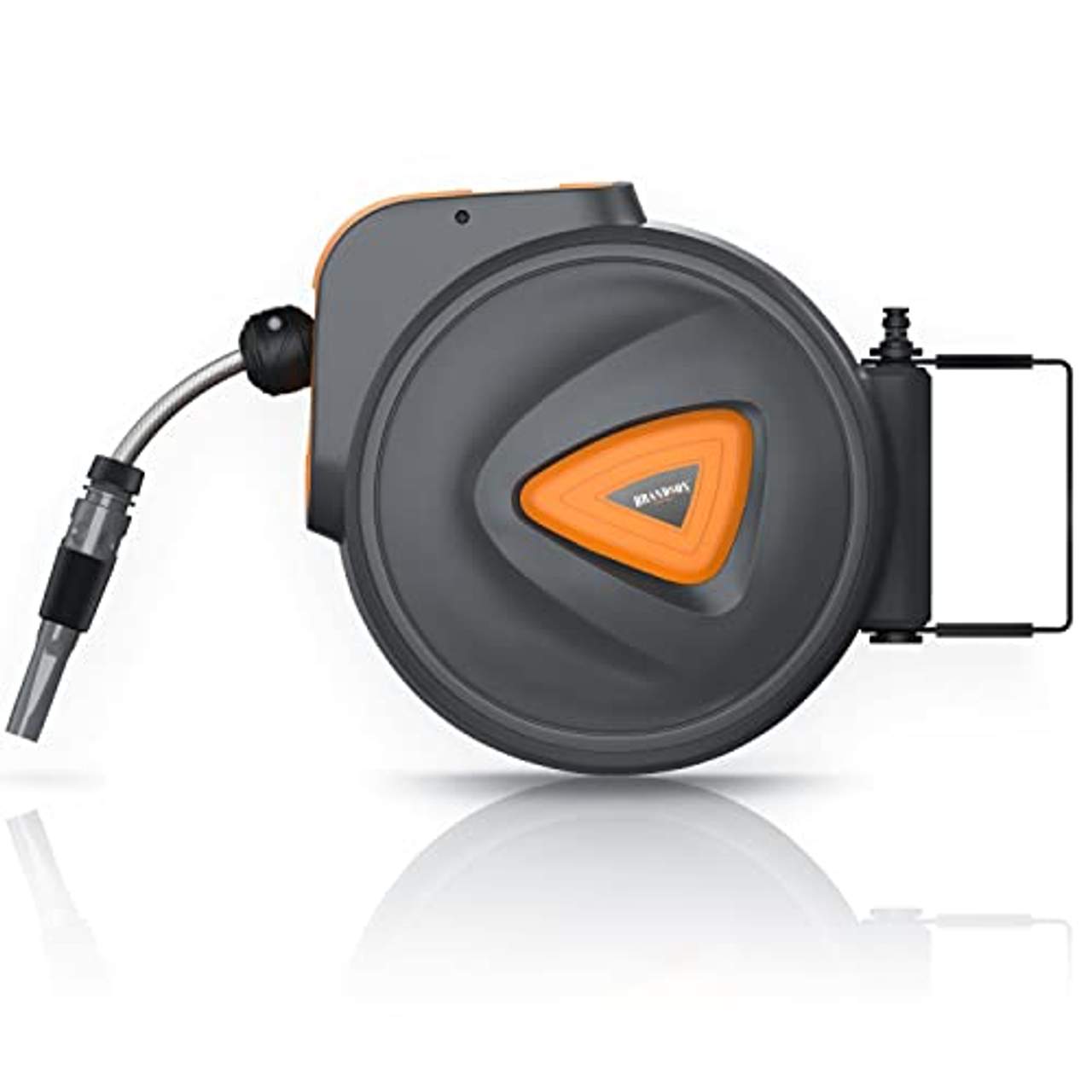 - Automatisches Aufwickeln von Schichten: Dieses Produkt verfügt über einen integrierten automatischen Lagenaufwickler, der dafür sorgt, dass der Gartenschlauch sauber und ordentlich aufgerollt wird. Dies erleichtert die Aufbewahrung des Schlauchs, wenn er nicht in Gebrauch ist, und verhindert, dass er sich verheddert oder verknotet.