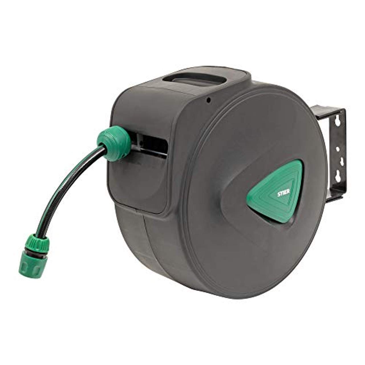 STIER Garten Schlauchtrommel SGS-200 20+2 mDer handliche und kompakte STIER Garten-Schlauchtrommel SGS-200 ist der ideale Helfer für Gartenarbeit und Bewässerungen.Eigenschaften:Durch die Schlauchtrommel ist der Gartenschlauch sicher vor UV-Einstrahlung und weiteren Witterungseinflüssen geschütztIntegrierte Aufrollautomatik wird durch leichtes Gegenziehen aktiviert und vermeidet lästiges Aufrollen per HandEinfaches Ausrollen durch Ziehen des Schlauches von bis zu 20 MeternPer Wandhalterung an der Hauswand montierbar und um 180° schwenkbar2 Meter langer Anschlussschlauch um naheliegenden Wasseranschluss einfach zu erreichenTrommel aus widerstandsfähigem PolypropylenLieferumfang:STIER Garten-Schlauchtrommel SGS-20020 + 2 Meter GartenschlauchSprühpistole mit GummigriffWandhalterung und SchraubenBedienungsanleitungIm Gartenbau ist richtiges Werkzeug für erfolgreiche Projekte entscheidend: Selbst herausfordernde Tätigkeiten gehen mit ihnen schnell von der Hand. STIER Garden bietet hochwertiges Equipment für die ambitionierte Gartenarbeit. Starke Leistung zum starken Preis.Erlebe das Sortiment von STIER Garden auf unserer Markenseite und finde die passenden Helfer für dein Gartenprojekt.