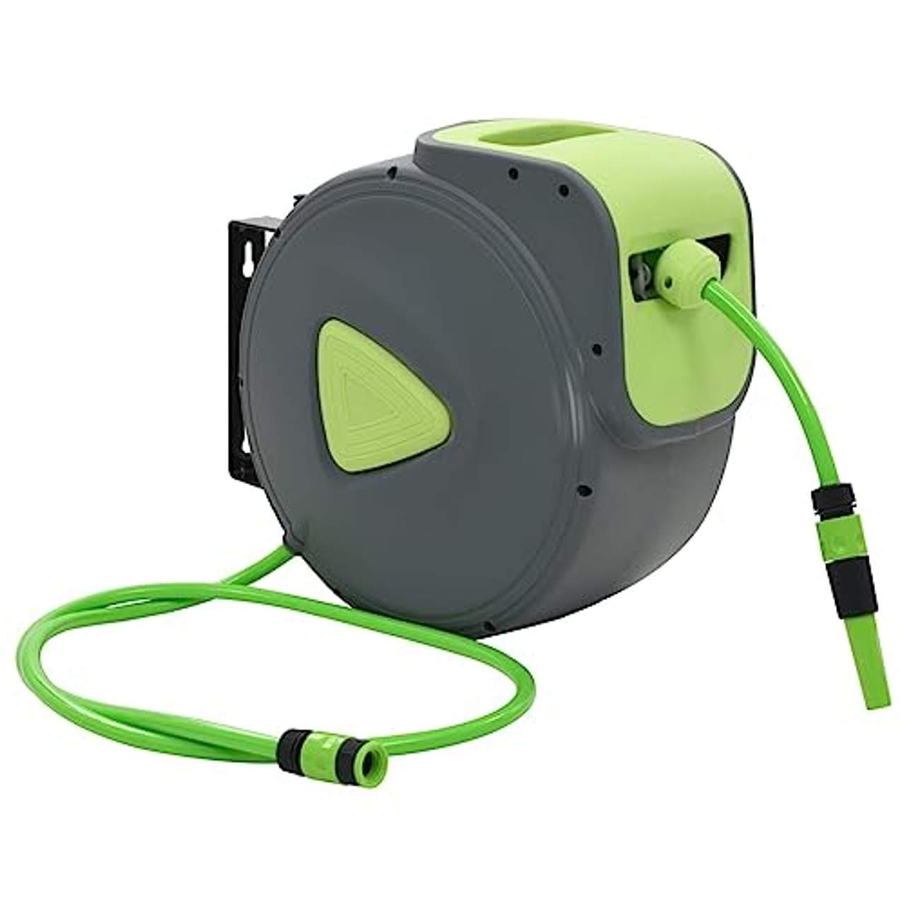 vidaXL Schlauchaufroller Automatisch 30+2m Wasserschlauch SchlauchtrommelDiese einziehbare Wasserschlauchtrommel kommt mit einem Anschluss und einer Sprühdüse und lässt sich an der Wand montieren. Sie ist ideal zur Gartenbewässerung, Berieselung, Fahrzeugreinigung und anderen ähnlichen Anwendungen. Diese Wand-Schlauchtrommel wird mit einem 30-Meter-Wasserschlauch und einem Verbindungsschlauch geliefert, dessen Länge 2 Meter beträgt. Durch den automatischen Aufrollmechanismus mit Arretierfunktion lässt sich der Schlauch in jeder Länge stoppen. Der Wasserfluss kann durch einfaches Drehen der mitgelieferten Sprühdüse geregelt werden. Der Schlauch besteht aus qualitativ hochwertigem PVC, das sehr langlebig ist, während das Gehäuse dafür sorgt, dass die Innenschlauchtrommel bei Nichtgebrauch ordentlich untergebracht wird.Spezifikationen: Farbe: Grün und Grau Schlauchmaterial: PVC Gehäusematerial: PP (Polypropylen) Schlauchlänge: 30 m (Auslass) + 2 m (Einlass) Schlauchdurchmesser: 1/2" Anschlussteil (BSP/NPT): 3/4" (mit montiertem Grünring) Anschlussteil