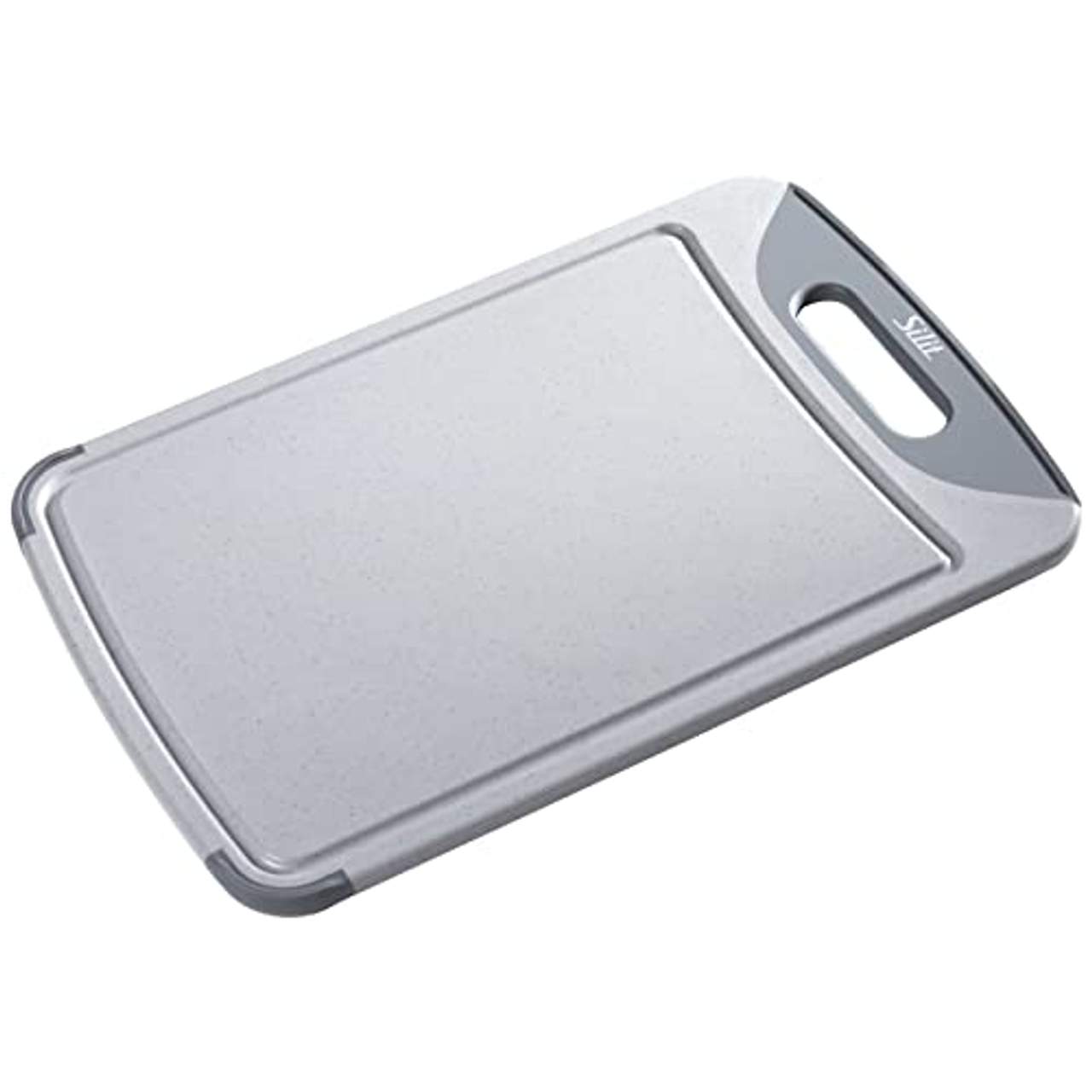 - Saftrille: Eine Seite des Schneidebretts hat eine Saftrille, die Flüssigkeiten auffängt, z. B. von Fleisch oder Tomaten, während sie geschnitten werden. Dies hilft, die Küche sauber zu halten und verhindert, dass versehentlich etwas auf die Arbeitsplatte oder den Boden verschüttet wird.