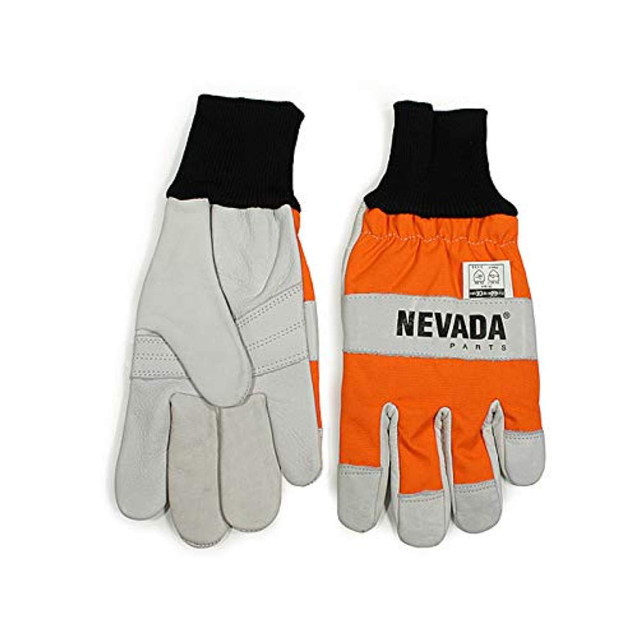 Nevada Schnittschutz Handschuhe Größe LSägenspezi NEVADA Schnittschutzhandschuhe Größe L / 10 - Forsthandschuh für Motorsäge / Kettensäge Schnittschutzhandschuh aus Vollleder-Textil-Mix - Kevlareinlage im Handrücken des linken Handschuhs für den Schnittschutz gegen Kettensägenverletzungen (EN 381-7, Klasse 0: 16ms) und vor mechanischen Gefahren (EN388) nach europäischer Norm - Signalfarbe/Leuchtfarbe am Handrücken - weiches Leder für gutes Arbeitsgefühl - elastischer Bund schützt Handgelenk und Pulsbereich - Klettverschluss am Handgelenk - Reflektor am Handrücken - Gummierung an der inneren Handfläche für noch mehr Grip Für Handumfang von ca. 22,9cm bis 25,4cm. Für Handlänge von Fingerspitze bis Handgelenk ca. 19,2cm bis 20,4cm.