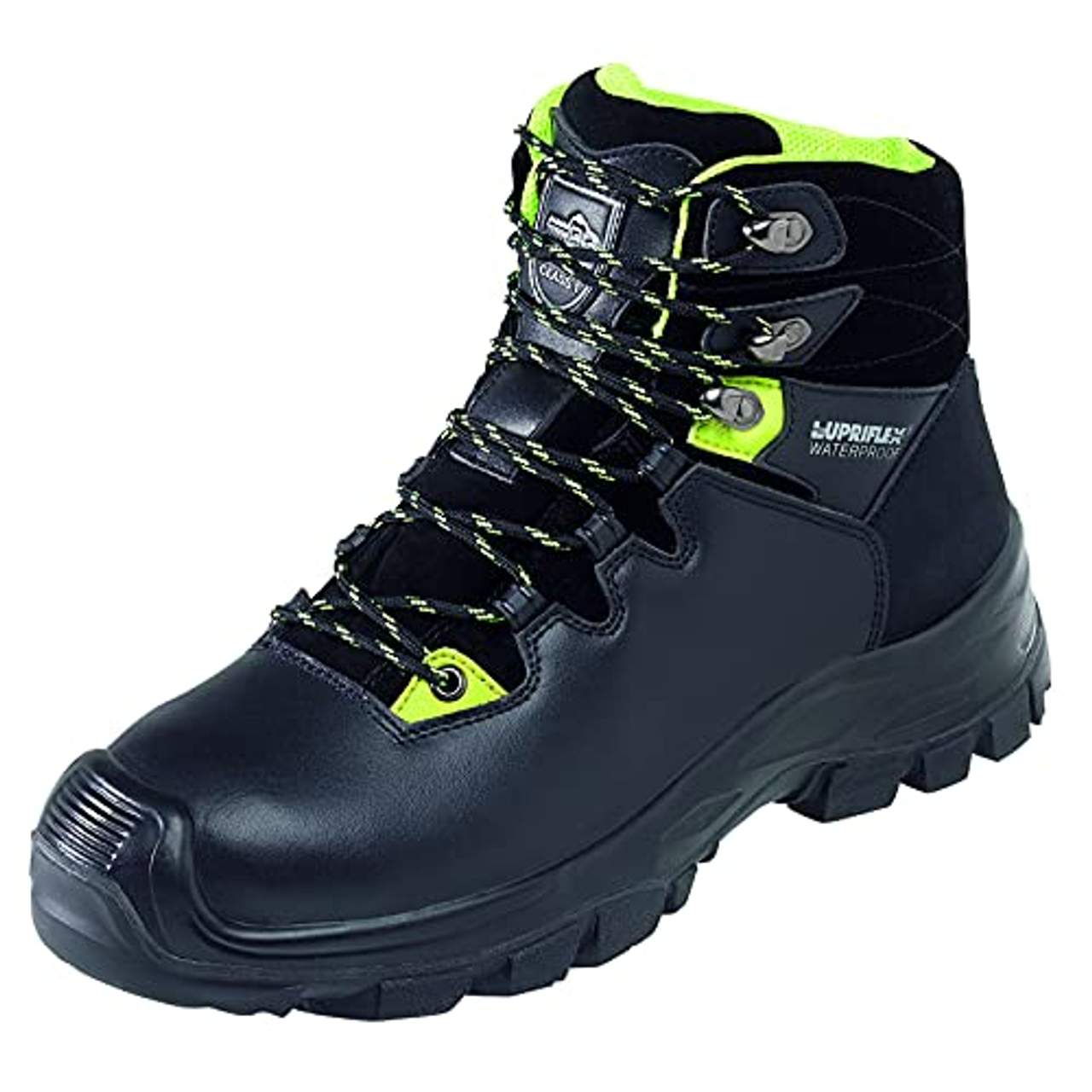 LX Forststiefel Sicherheitsstiefel Hunter Low 2-in-1EN ISO 20345, S3. KWF anerkannt. Der Lupriflex Sicherheitsschuh Hunter Low 2-in-1 erfüllt eine Doppelfunktion. Mitgeliefert werden Klammern zur Verbindung des Sicherheitsschuhs mit einer vorhandenen Schnittschutzhose. Diese Verbindung macht aus dem Sicherheitsschuh einen Schnittschutzschuh der Schnittschutzklasse 1.Somit ist kein Schuhwechsel erforderlich, um mit der Motorsäge arbeiten zu können. Der Sicherheitsschuh Hunter Low 2-in-1 ist niedriger als herkömmliche Schnittschutzstiefel, wodurch deutlich mehr Tragekomfort erzielt wird. Er ist ausgestattet mit einer atmungsaktiven Klimamembran, einer Zehenschutzkappe aus Stahl und einer durchtrittsicheren Stahlsohle.Das Obermaterial ist aus Rind-Glattleder, die gepolsterte Faltlasche ist ebenfalls aus Leder. Der Reflektor sorgt für mehr Sichtbarkeit. Der breite Leisten mit Weite 12 erhöht den Tragekomfort. Die Zwei-Dichten-PU-Außensohle hat ein 5 mm tiefes, forstspezifisches Sohlenprofil. Das anatomisch geformte Fußbett ist herausnehmbar. Schafthöhe 14 cm. Gewicht 2100 g (Gr. 43).DGUV-Regel 112-191 Zugelassen mit orthopädischen Einlagen.