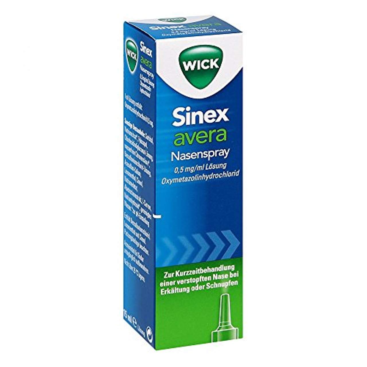 Wick Sinex avera NasenspraySchnupfen und verstopfte Nase gehören zu belastenden Symptomen von Grippe und Erkältung. Das Wick Sinex Avera Nasenspray ist ein wirkungsvolles, klinisch erprobtes Mittel, das Ihre Nase für bis zu 8 Stunden von lästigen Schnupfenbeschwerden befreit. Mit sanfterer Wirkung. Zur lokalen Linderung der Symptome einer verstopften Nase in Verbindung mit einer Erkältung oder Sinusitis (Entzündung der Nasennebenhöhlen). Dosierung und Anwendungshinweise:Erwachsene und Kinder über 10 Jahre: 1 - 2 Sprühstöße in jede Nasenöffnung, höchstens 2 - 3 mal täglich.Kinder von 6 - 10 Jahren: 1 Sprühstoß in jede Nasenöffnung, höchstens 2 - 3 mal täglich. Verschlusskappe abnehmen. Flasche aufrecht halten und den Sprühaufsatz in das Nasenloch halten. Das andere Nasenloch zuhalten. Sprühen und gleichzeitig tief durch die Nase einatmen. Den Vorgang mit dem anderen Nasenloch wiederholen. Den Sprühaufsatz mit einem sauberen, feuchten Papiertuch abwischen und die Verschlusskappe sofort nach der Anwendung wieder aufsetzen.Erwachsene und Kinder über 10 Jahren können die Schritte 1 und 2 gegebenenfalls einmal wiederholen. Nicht länger als 5 - 7 Tage ununterbrochen anwenden. Bei Anwendung über einen längeren Zeitraum kann Wick Sinex avera Nasenspray eine verstopfte Nase verursachen. Bitte sprechen Sie mit Ihrem Arzt, wenn sich die Symptome verschlimmern oder nach 3 Tagen nicht bessern. Zusammensetzung: Oxymetazolinhydrochlorid 0,5 mgSonstige Bestandteile: Sorbitol, Natriumcitrat*, Tyloxapol, Chlorhexidindigluconat-Lösung, Wasserfreie Citronensäure*, Benzalkoniumchlorid-Lösung, Acesulfam-Kalium, Levomenthol, Cineol, Natriumedetat, Aloetrockenextrakt, L-Carvon, Natriumhydroxid*, gereinigtes Wasser*zur pH-Einstellung Hinweise:Enthält Benzalkoniumchlorid, Levomenthol und Cineol. Nicht für Kinder unter 6 Jahren. Bewahren Sie dieses Arzneimittel für Kinder unzugänglich auf. Die empfohlene Dosierung nicht überschreiten. Nicht über 25 °C lagern. Pflichttext:Wick Sinex avera Nasenspray 0,5 mg/ml Lösung Oxymetazolinhydrochlorid Anwendungsgebiete:. Symptomatische Behandlung von Nasenschleimhautschwellungen. Warnhinw.: Nasenspray enthält Benzalkoniumchlorid 0,2 mg/ml, Levomenthol und Cineol. Apothekenpflichtig. Stand: 9/17 Zu Risiken und Nebenwirkungen lesen Sie die Packungsbeilage und fragen Sie Ihren Arzt oder Apotheker.