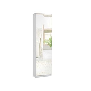 Mit einer Breite von 89 cm, einer Höhe von 104 cm und einer Tiefe von 23 cm ist dieser Schuhschrank kompakt genug, um in jeden Flur zu passen und bietet trotzdem genügend Stauraum. Mit seinen doppelreihigen Kippvorrichtungen kannst du je nach Form und Größe bis zu 16 Paar Schuhe ordentlich verstauen.