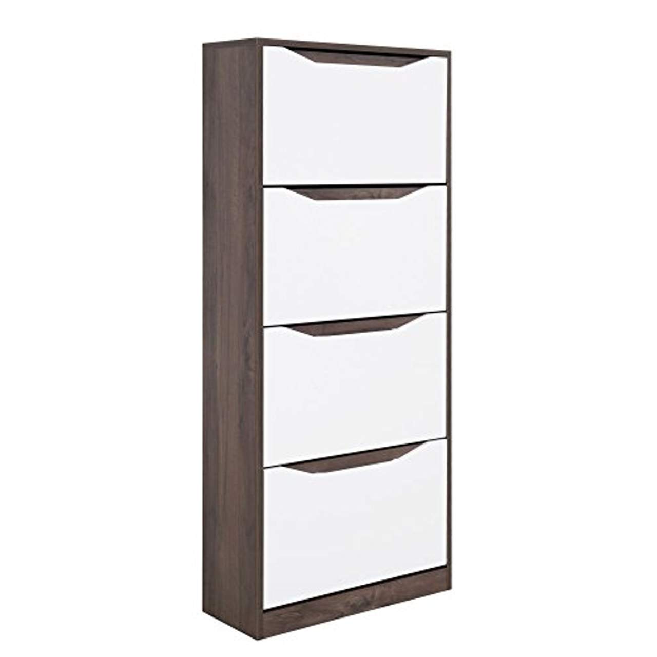 Dieser Schuhschrank bietet mit seinen vier kippbaren Fächern reichlich Stauraum, so dass du deine Schuhe bequem aufbewahren und organisieren kannst. Er ist ideal für alle, die eine große Schuhsammlung haben oder eine ordentliche Organisation suchen.