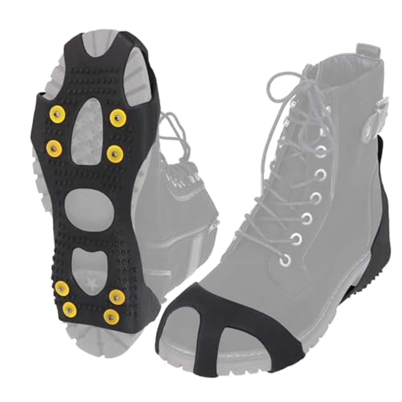 - Hervorragende Traktion: Das Produkt verfügt über 8 integrierte Spikes im Ballen- und Fersenbereich, die einen hervorragenden Grip auf vereisten Oberflächen bieten.