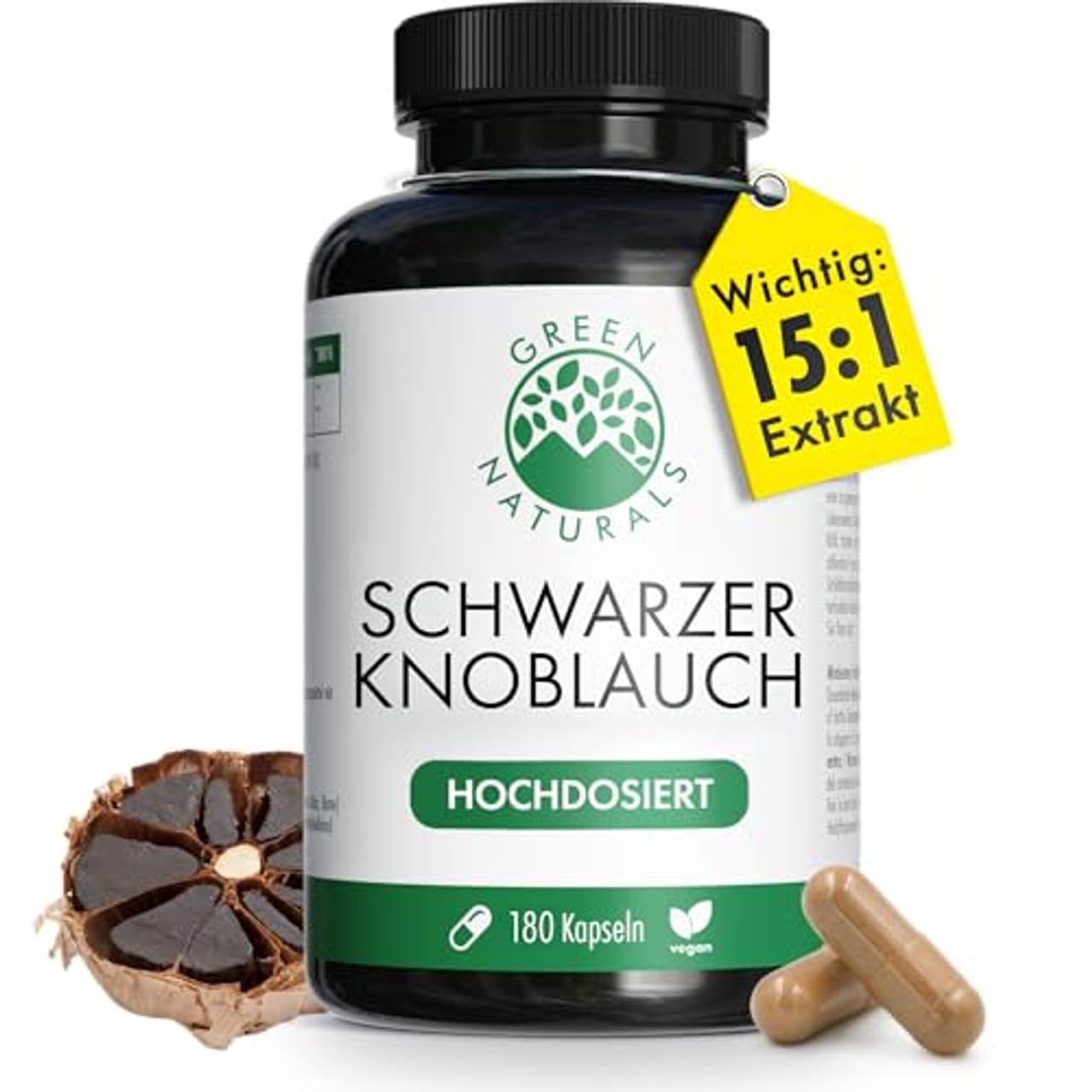 - Schwarzer Knoblauch 15:1 Extraktca. 18 €0,10 €/StückGratis Premiumversand mit Amazon Prime