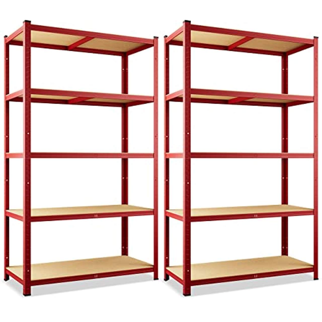 2x Deuba Schwerlastregal 180x90x40cm 875kg rot 5 MDF-Platten Lagerregal