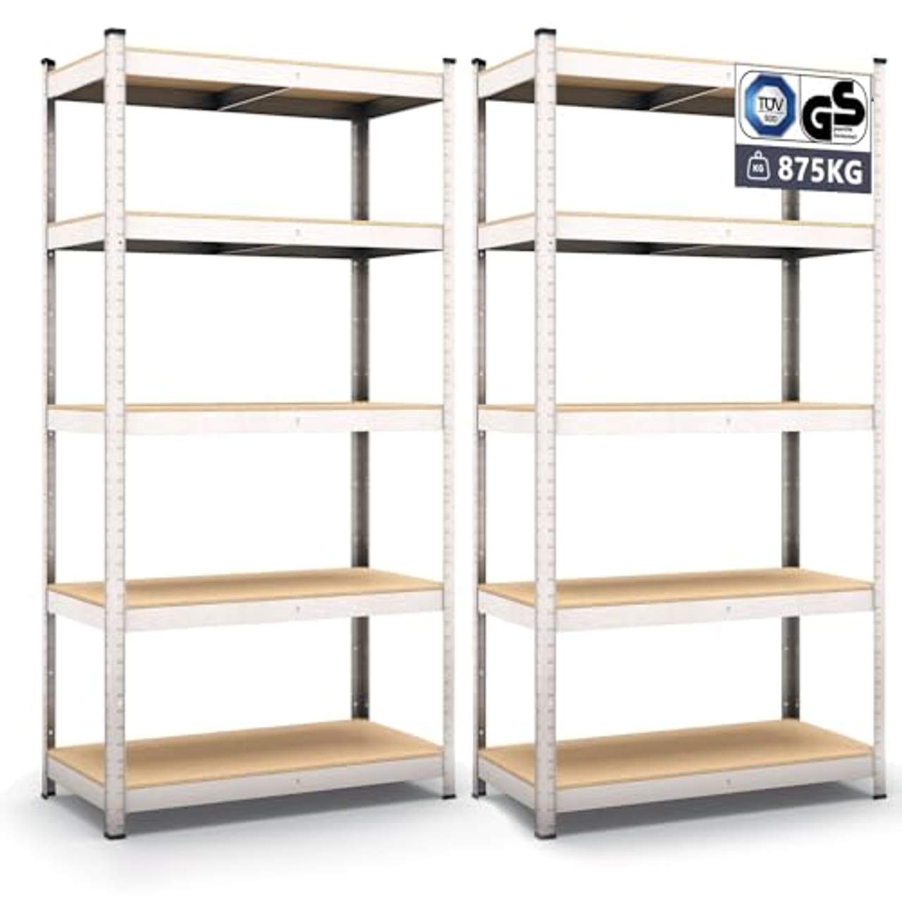 Das Panorama24 Regal Lagerregal 2 Stück besticht durch seine hohe Belastbarkeit von bis zu 875 kg, was es zu einer hervorragenden Wahl für schwere Lageranforderungen macht. Sein steckbares Design vereinfacht den Aufbau und macht den Einsatz von Werkzeugen überflüssig, während es mit fünf verstellbaren Regalebenen Flexibilität bietet. Die robusten MDF-Fachböden und die verstärkten Querstreben sorgen für Stabilität und Langlebigkeit, was für die sichere Aufbewahrung schwerer Gegenstände entscheidend ist. Bodenschonende Kunststofffüße machen das Regal noch praktischer. Dank der einfachen Aufstellung und der Multifunktionalität eignet sich das Regal für verschiedene Umgebungen wie Garagen und Büros. Dieses Regal zeichnet sich durch seine Funktionalität und Kosteneffizienz aus und eignet sich perfekt für jeden in deinem persönlichen Schwerlastregal-Test, der nach zuverlässigen, anpassungsfähigen Lagerlösungen sucht.