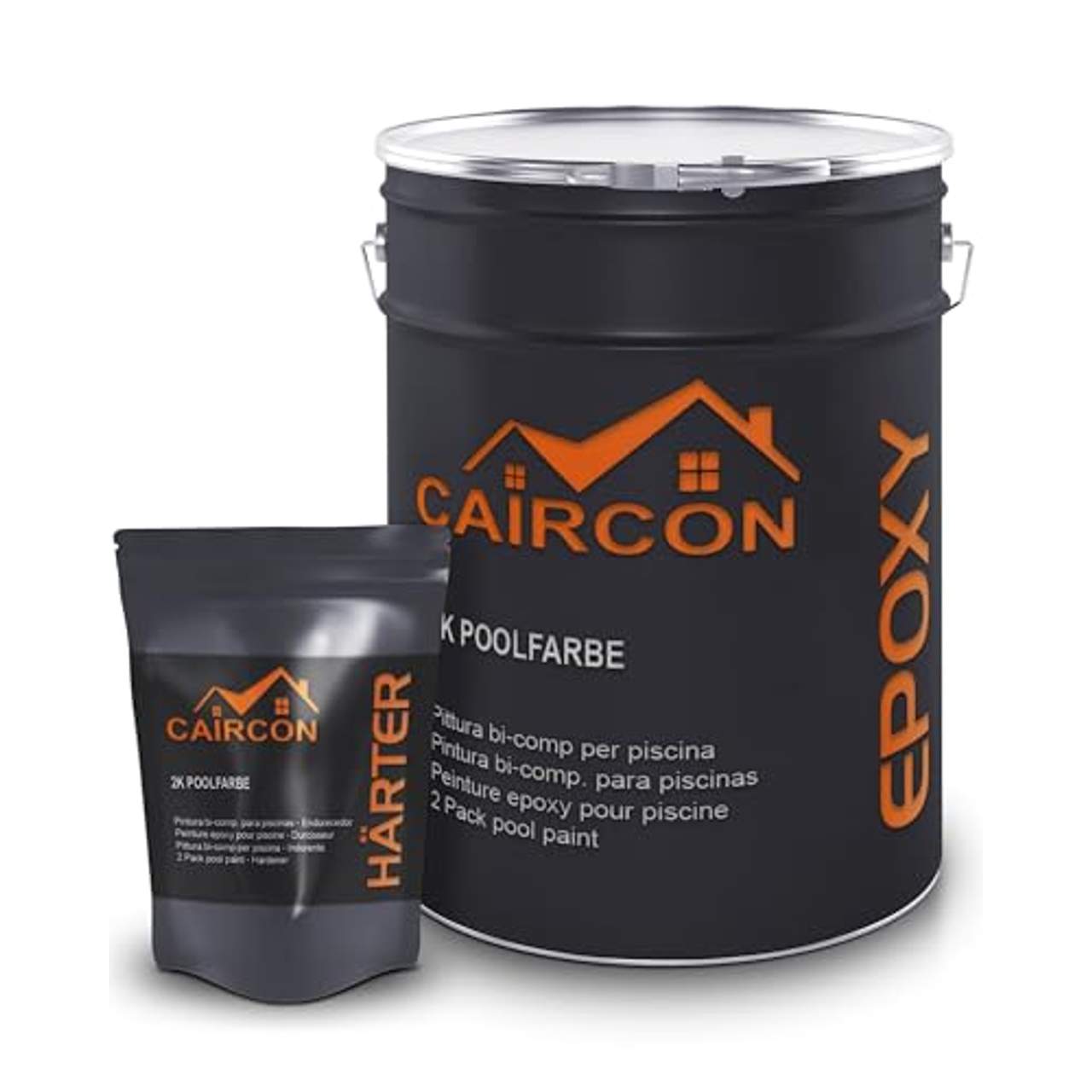Dieses Produkt ist eine 2K Epoxidharz Schwimmbadfarbe Schwimmbeckenfarbe der Marke CAIRCON. Sie kann auf mineralischen Untergründen wie Zement, Beton, Estrich und Fliesen eingesetzt werden und ist beständig gegen Chlor, Feuchtigkeit, Wasserpflegemittel, Säuren, Salz und Laugen. Die Farbe bietet Schutz für Schwimmbäder, Springbrunnen, Tankauskleidungen sowie Überlauf- und Auffangwannen. Sie hat eine hohe Deckkraft ohne Kreidung oder Tropfenbildung.