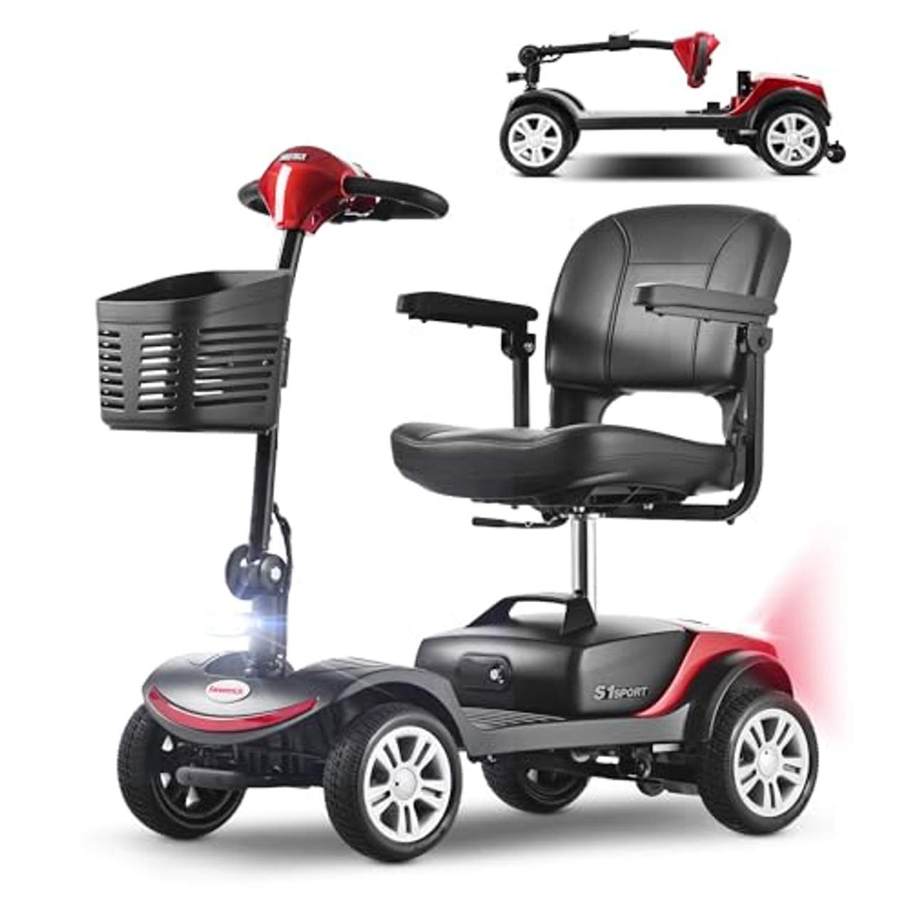 Um den Komfort und die Zugänglichkeit zu verbessern, verfügt der Rollstuhl Elektrisch Faltbar über einen um 360° drehbaren Sitz, mit dem du mühelos die Richtung wechseln kannst. Die hochklappbaren Armlehnen erleichtern das mühelose Ein- und Aussteigen. Außerdem sorgt die Hinterradfederung für eine bequeme Fahrt über holprigen Untergrund und macht jede Fahrt angenehmer.