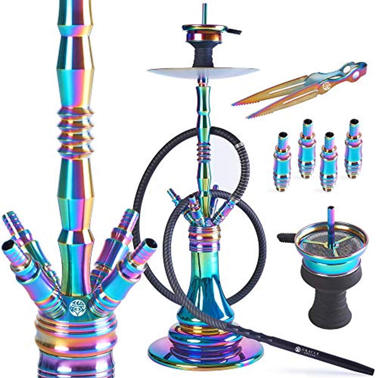 Wir stellen das ORACLE HOOKAH Regenbogen Shisha Set V2A Regenbogen Edelstahl Wasserpfeife 72cm vor