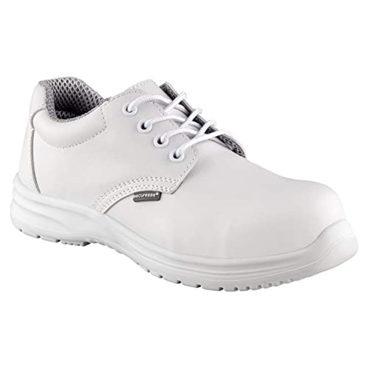 - Dauerhafter Schutz: Der securesse Sicherheits-Halbschuh niedrig S2 weiß bietet einen zuverlässigen Schutz vor Gefahren am Arbeitsplatz. Er entspricht der Norm EN 20345:2007 S2 SRC und hat Kunststoffösen für zusätzliche Haltbarkeit.
