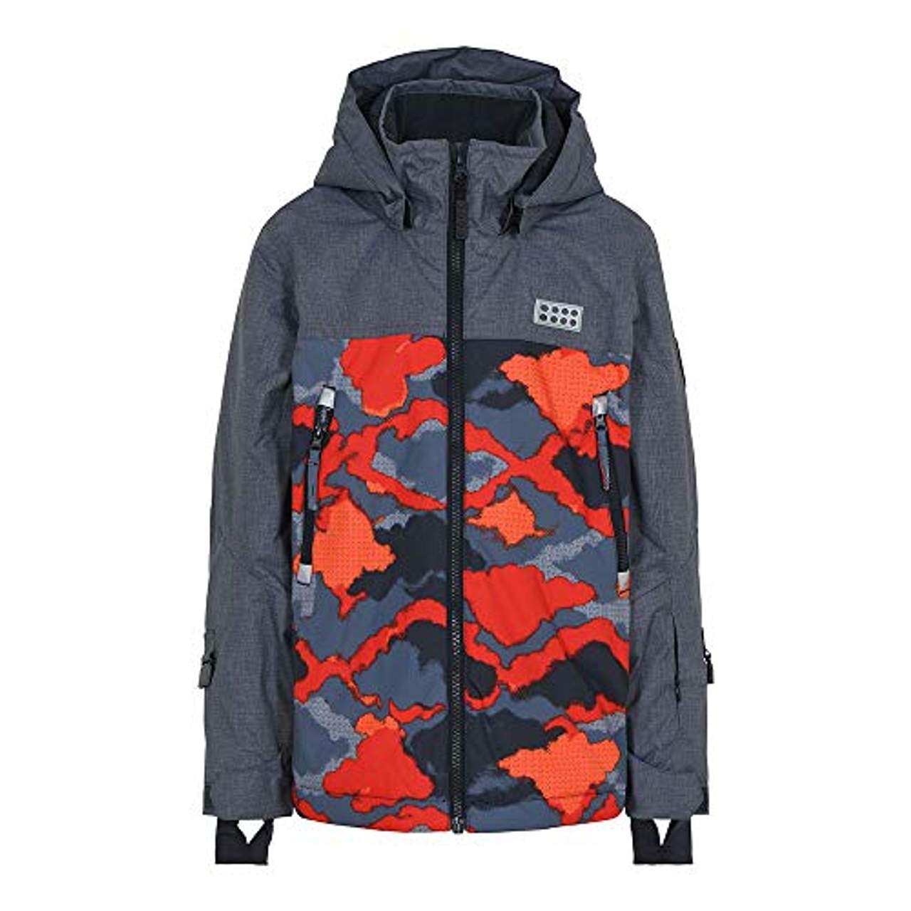 Lego Wear Jungen LwjoshuaSchicke LEGO Wear TEC Kinderwinterjacke. Die Ärmel, der obere Teil des Körpers und die Kapuze sind in einem einfarbigen graumelierten Material gefertigt, während der untere Teil der Jacke ein all-over-Tarnung-Muster hat. Das Muster ist in orangen und grauen Tönen designt, und die Rückseite ist ein wenig länger geschnitten, was perfekt ist, wenn man im Schnee herumtummelt.Die funktionelle und widerstandfähige Jacke lässt sich durch einen YKK Reißverschluss mit ikonischem Zip-Puller auf der Vorderseite schließen. Mit Windschutz unter dem Reißverschluss samt einem doppeltseitigen Kinnschutz. Weiches Futter im Kragen und im Rücken. Die Jacke ist in einem Material mit einer Wassersäule von 12.000 mm gefertigt.Sie ist 100% winddicht und atmungsaktiv, und die getapten Nähte machen die Jacke 100% wasserdicht. Die Kapuze ist abnehmbar und ist auf einem Druckknopfband befestigt. Das Band ist zu verstecken, wenn die Kapuze abgenommen wird. Mit Windstopper in der Kapuze innen.Schneefang mit Druckknöpfen auf der Innenseite. Wenn der Schneefang nicht im Gebrauch ist, kann er stattdessen an die Seiten der Jacke angeknöpft werden. Technische Nähte bei den Ellenbogen für eine optimale Bewegungsfreiheit. Dehnbare Innenmanschette mit Daumenloch.Ärmelenden mit verstellbarem Klett für einen engen Sitz über den Handschuhen. Die zwei Reißverschlusstaschen sind mit Reflektor-Details versehen, und sie sind mittig angebracht. Versteckte Reißverschlusstasche für Liftkarte am Ärmel unten und Reißverschlusstasche innen. Befestigung für Handschuhe an Sicherheitsschnalle.Im Notfall öffnet sich die Schnalle, um ein Festhängen zu vermeiden. Wenn die Handschuhe nicht im Gebrauch sind, können sie einfach frei an der Schnalle befestigt hängen und bleiben also nicht weg, wenn dein Kind mit seinem Spiel beschäftigt ist.LEGO Wear TEC Filz-Applikation am Ärmel und ikonische 3M Scotchlite Reflektoren auf Vorder- und Rückseite. Etikett für Namen und Telefonnummer im Inneren. Die Jacke ist mit einer umweltfreundlichen Bionic-Finish ECO-Behandlung imprägniert, die die wasser- und schmutzabweisende Eigenschaften des Stoffs verbessert.Sicherheit: Die Jacke ist mit 3M Scotchlite Reflektoren samt abnehmbarer Kapuze versehen. Keine losen Schnüre in den Kapuze- und Halsbereichen. Befestigung für Handschuhe an Sicherheitsschnalle, damit sie immer bei der Hand sind und nicht verloren werden.Im Notfall öffnet sich die Schnalle, um ein Festhängen zu vermeiden. Chemikalien: Gemäß den EU-Chemikalienrichtlinien (REACH) werden alle LEGO TEC Produkten ohne den Einsatz schädlicher Chemikalien produziert, was von Bureau Veritas getestet wird.