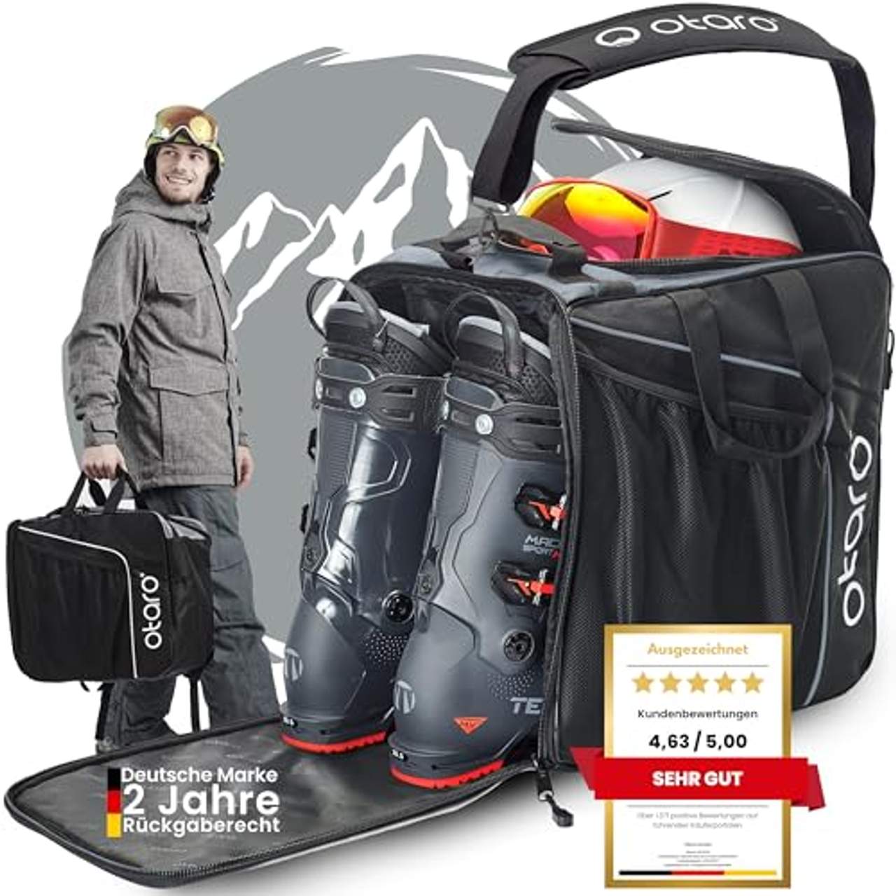 - 30 Tage Probezeit: Der Otaro Ski Boot Bag Classic Grey wird mit einer 30-tägigen Testphase geliefert, in der Kunden das Produkt ausprobieren und bei Nichtgefallen gegen volle Rückerstattung zurückgeben können.