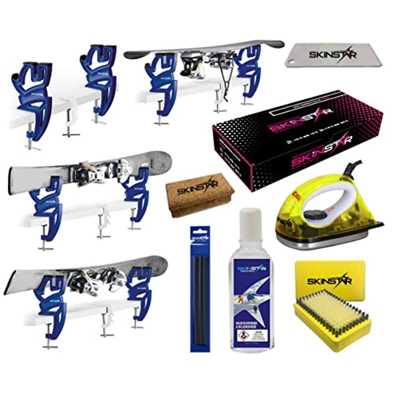 - SkinStar Skiwax Set 11-teilig Skispanner Bügeleisen und Universal Wachs