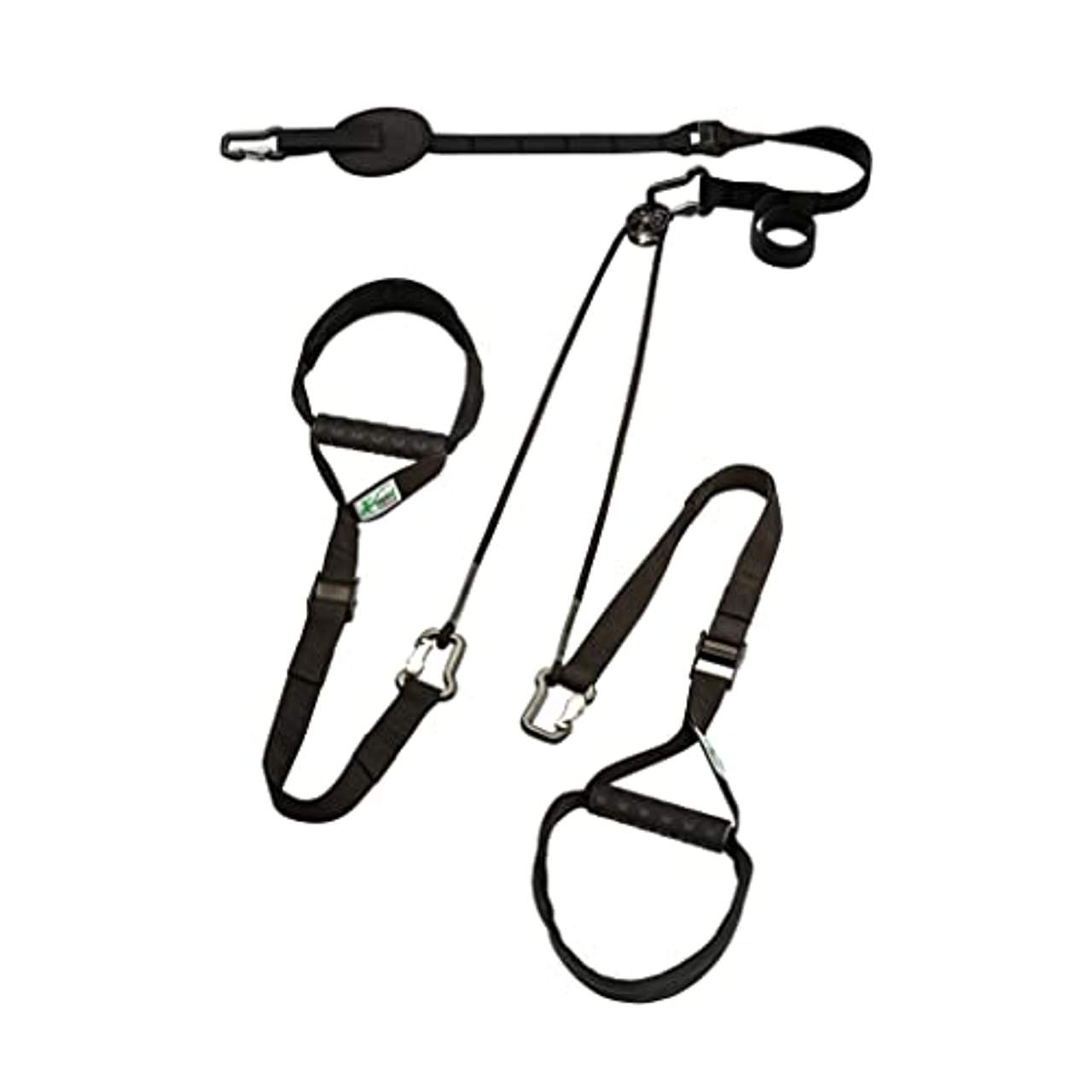 - Vielseitige Übungen: Das Produkt wird mit zwei Griffschlaufen mit Metall-Längenverstellung und vier Karabinern geliefert, die endlose Trainingsmöglichkeiten sowohl im Fitnessstudio als auch zu Hause ermöglichen. Zusätzlich erweitern die 4 cm breiten Fußschlaufen das Trainingsspektrum - insbesondere für die Tiefenmuskulatur.