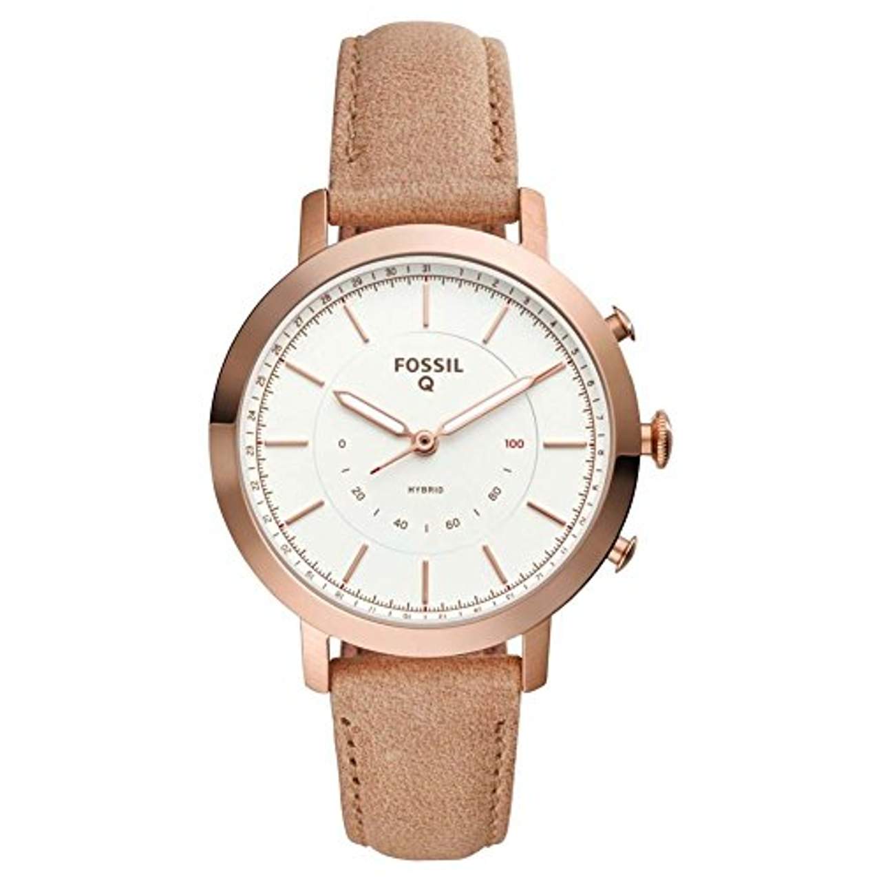 Fossil Smartwatch FTW5007Hybrid Smartwatch / Geräteart: Second Screen / Für wen: Damen / Stil: Klassisch / Betriebssystem Kompatibilität: Android 5.0+, iOS 9.0+ / Gehäusematerial: Edelstahl / Gehäuseeigenschaft: Schutz gegen Strahlwasser / Gehäusefarbe: roségold / Gehäuseform: rund / Gehäusedurchmesser: 36 mm / Gehäusehöhe: 12 mm / Armbandmaterial: Leder / Armbandfarbe: braun / min. Armbandlänge: 140 mm / max. Armbandlänge: 240 mm / Armbandbreite: 16 mm / Bandeigenschaften: austauschbar / Verschluss: Dornschließe / Datenübertragung: Bluetooth / Bluetooth-Version: 4.1 LE / Uhrwerk: Quarz / Stromversorgung: Knopfzelle, wechselbar / Akkulaufzeit: 6 Monate / Trackerfunktionen: Schrittzähler, Aktivitätstracker, Schlaftracker / Audiofeature: Musik Fernbedienung / Zifferblatt-Eigenschaft: analog / Zifferblattfarbe: weiß / Uhrenglas: Mineralglas / Uhrenindex: ohne Ziffern / Batterie-Typ: CR2025 / Zeiger-Eigenschaft: Leuchtzeiger / Wasserdichtigkeit: 50 m / Wasserdichtigkeit: 5 bar / Wasserdichtigkeit: 5 atm
