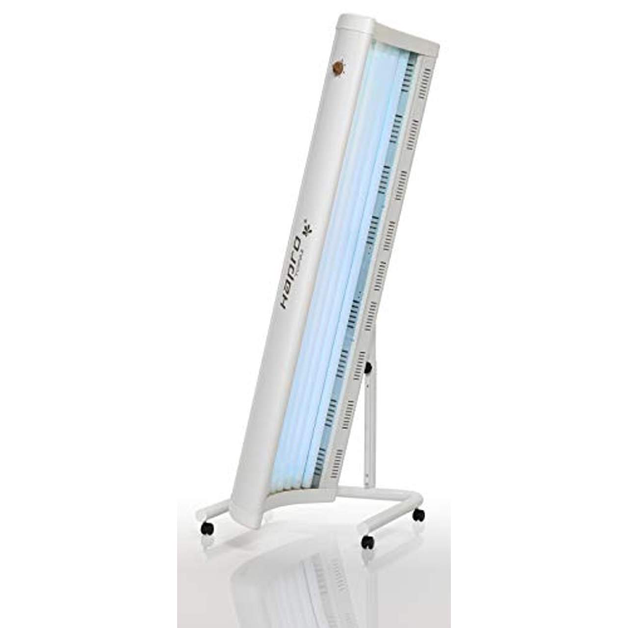 Hapro Topaz 12 V 100 WBesonders unter unseren Heimsolarien ist die Hapro Topaz V-Serie mit einem auf 4 Rollen fahrbaren vertikalen Stativ sehr komfortabel: Die Gasfeder-Höheneinstellung ist sehr leichtgängig und einzigartig unter allen vergleichbaren Produkten. Ob man liegend, sitzend oder stehend sonnenbaden möchte, die Hapro Topaz V-Serie passt sich jeder Lage an und ist mit 10 UV Röhren und einem speziellem Hochdruck Gesichtsbräuner ausgestattet.Natürlich benötigt man für alle HAPRO Heimgeräte lediglich einen normalen 220V Strom Anschluss. Stecker rein und los geht es … Technische Daten: Version mit 6 x 100W +, 4 x 80W Röhren und 1x 400W Gesichtsbräuner Leistungsaufnahme 1,42 kW Gewicht 43,5 kg Masse (zugeklappt): Länge 2250 mm x Tiefe 1100 mm x Höhe 1140 mm Masse (aufgeklappt): Länge 650 mm x Höhe 1930 mm