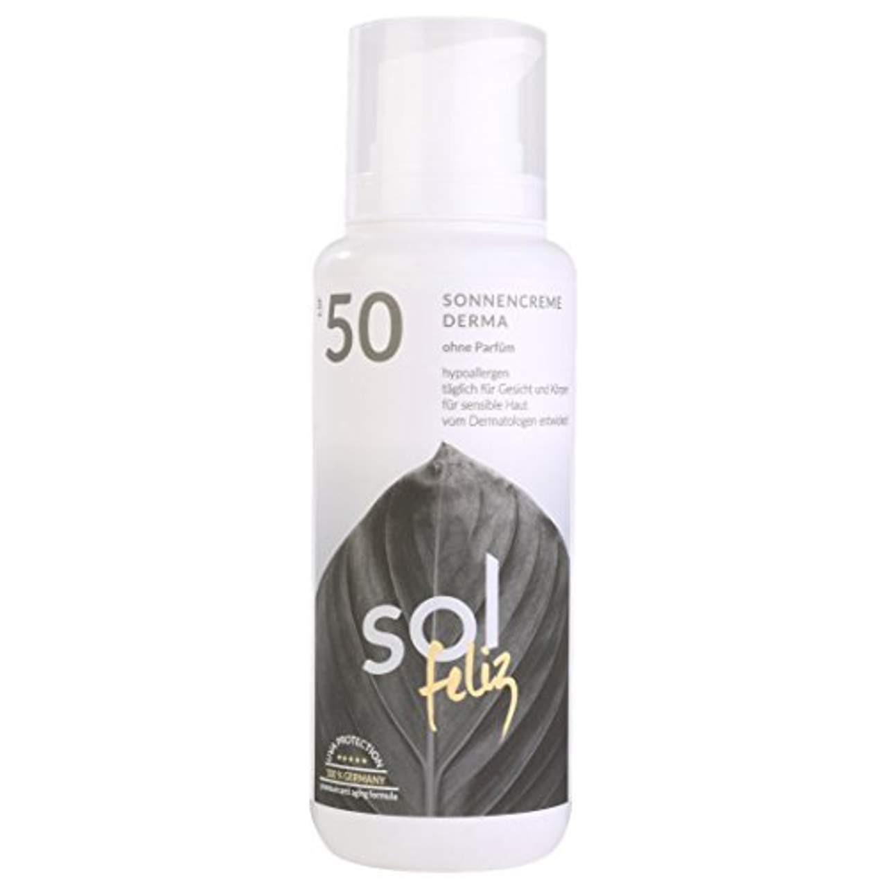 Sol Feliz Dermatologische SonnencremeSol Feliz bietet Dir alles, was Du von einer hochwertigen Sonnencreme aus der Apotheke erwartest: Dermakosmetische Eigenschaften, exzellente Verträglichkeit, angenehmes Tragegefühl und integrierter UVA-Schutz der Extraklasse gegen Hautalterung. Gleichzeitig unterstützt Du automatisch Projekte gegen Hautkrebs in Brasilien.Ohne Parabene, ohne Parfüm, ohne Alkohol, ohne Tierversuche, hypoallergen, nicht-komedogen.Sol Feliz ist von einem anerkannten europäischen Experten für Sonnenschutz entwickelt (unabhängige Entwicklung) und wird in Deutschland hergestellt. Dass das Tragen von Sonnencreme Dir eine Freude bereitet, statt zur Last zu werden, das möchte Sol Feliz erreichen. Deine Vorteile mit Sol Feliz findest Du ausführlich in der Beschreibung weiter unten.200 ml / 244 g brutto