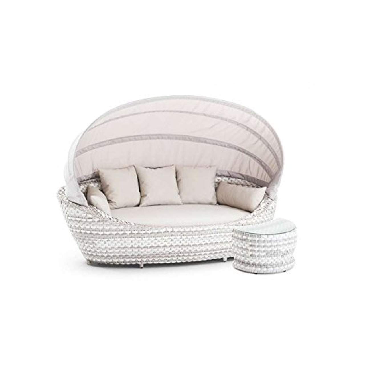 Das Produkt ist für den Außenbereich geeignet, da es aus wetterfestem Polyrattan-Geflecht, Abaco XF, besteht. Diese Eigenschaft sorgt dafür, dass die Liegeinsel ihre Qualität und ihr Aussehen auch bei rauen Witterungsbedingungen beibehält.