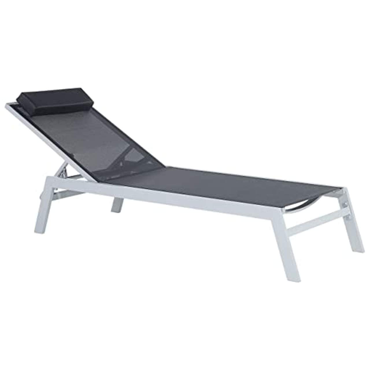 - Elegantes Design: Diese Sonnenliege hat ein modernes und elegantes Design mit einer klassischen schwarzen Farbe, die jedem Außenbereich Stil verleihen wird. Der silberfarbene Aluminiumrahmen bildet einen auffälligen Kontrast zum schwarzen Stoff und sorgt für ein schickes Aussehen.