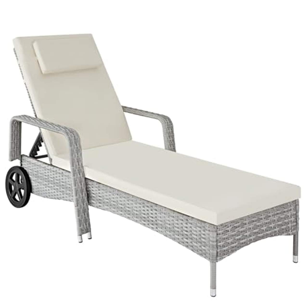 - Leicht zu reinigen: Der TecTake 800077 Polyrattan Garden Lounger ist mit seinen gummierten Rädern und dem Kissen aus 100% Polyester leicht zu reinigen.
