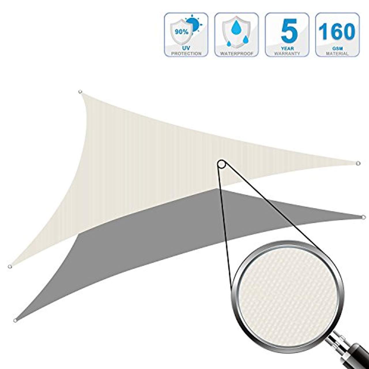 Form: Dreieck Größe: 3.6x3.6x3.6m Farbe: Creme Material: Polyester Liefrumfang: 1 x Sonnensegel, 1 x Handbuch Wasserdicht, ideal für unvorhersehbares Wetter Blockiert über 90% der schädlichen UV-Strahlen - zertifiziert 5 Jahre Garantie als Standard High Density Polyester (160g/m² UV-stabilisiert) Edelstahl-Befestigungen an jeder Ecke zur Befestigung Konkav geschnitten für perfektes SpannenAchtung: Alle Größen sind von Loch zu Loch (nicht die Textiloberfläche). Alle Abmessungen sind ungefähr und mit einer Toleranz von +/- 5 cm.