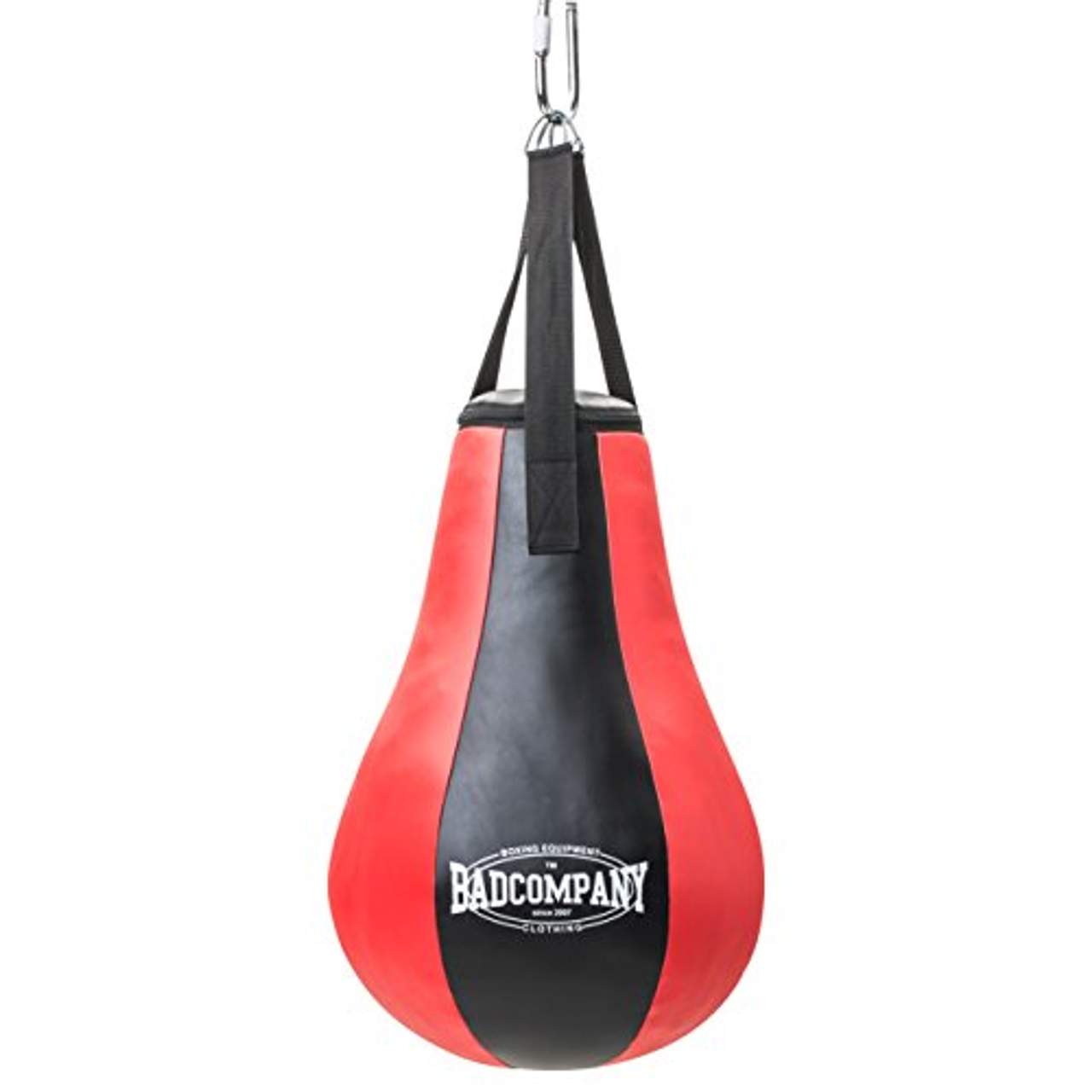 Bad Company Boxbirne gefüllt I Vinyl Punching-Ball Maisbirne hängendBad Company gefüllte Maisbirne aus reißfestem Vinyl mit Nylon-AufhängungMit der großen Boxbirne, deren Name sich von ihrer Form herleitet und die auch als „Big Berta“ bezeichnet wird, kann man gegenüber einem klassischen Boxsack eine große Bandbreite an Schlägen durchführen und dabei sowohl die Schlagtechnik und Schlagkraft verbessern als auch das Distanzgefühl schulen.Gerade Boxschläge gehören ebenso dazu wie so genannte Aufwärtshaken oder Upper Cuts, die dank des strapazierfähigen, langlebigen und schwitzwasserabweisenden Materials und der hervorragend verarbeiteten Nähte zuverlässig absorbiert werden.Durch das hohe Gewicht der Birne und die stabile Nylon-Aufhängung wird zudem das Pendeln beim Boxen minimiert und damit ein sicheres Training gewährleistet.Der Schlagball ist bereits mit Filz- und Textilresten gefüllt, sodass man nach dem Aufhängen gleich mit dem Boxtraining beginnen kann.Qualitätsmerkmale:Gefertigt aus reißfestem und schwitzwasserabweisendem Vinyl