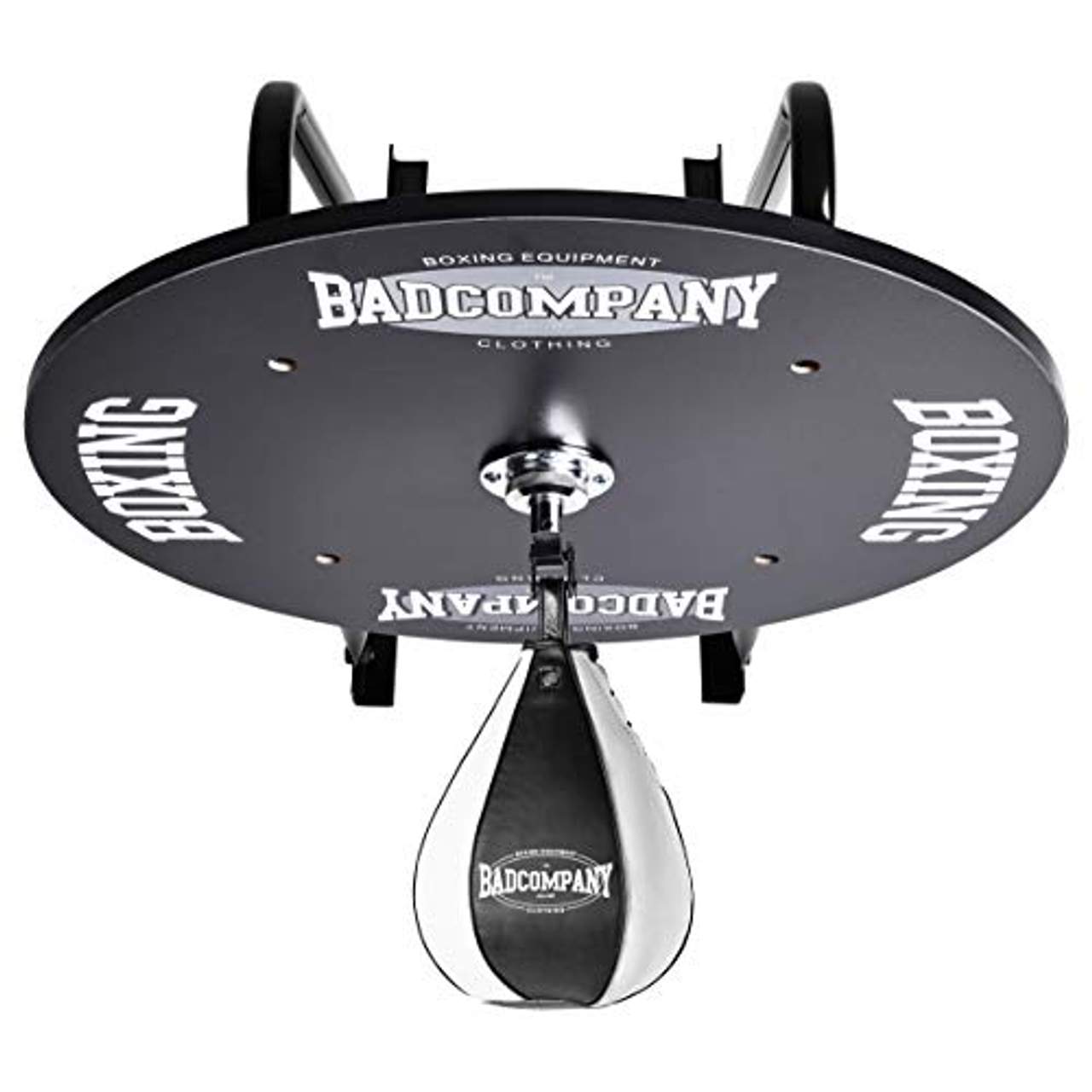 Profi Speedball Plattform SetSpeedball Plattform mit PU Boxbirne zur WandmontageEgal, ob als Vorbereitung für den Wettkampf, oder als Workout für zu Hause, der Bad Company Speedball mit praktischer Wandhalterung ist die ideale Ausrüstung für jeden, der seine Schnelligkeit, Schlagkraft und Konzentration verbessern möchte.Der Speedball wird in Verbindung mit der edlen Plattform und verchromten, leichtgängigen Drehkugellager zum idealen Boxtrainingsgerät. Nicht nur der Punchingball selbst, der aus hochwertigem und extrem strapazierfähigem Kunstleder gefertigt ist, sondern auch die Rückprallplattform im Industriedesign, trägt zu einer besonderen Atmosphäre im Studio oder Zuhause bei.Qualitätsmerkmale:Boxbirne aus strapazierfähigem PU Vierkantstahl Stahlrohrkonstruktion Einfache Montage durch vier Stahlschrauben (nicht geeignet für Rigips oder Hohlraumwände) Kühles Industriedesign mit Bad Company SchriftzugProduktdetails:Abmessung der Plattform: ca. 60 cm Durchmesser / 1,7 cm StärkeAbstand zur Wand: 72,5 cmRahmenfarbe: Schwarz/AnthrazitEigengewicht: 6,3 kgMaterial Boxbirne: PUFarbe Boxbirne: Schwarz/WeißHinweis:Die Boxbirne wird nicht aufgepumpt geliefert. Zum Aufpumpen wird eine Ballpumpe mit passendem Ventil benötigt (separat erhältlich).Lieferumfang:1 x Speedball Plattform mit PU Boxbirne inkl. MontagematerialGeringfügige Abweichungen bei Abmessungen, Gewicht oder Farbe sind möglich.