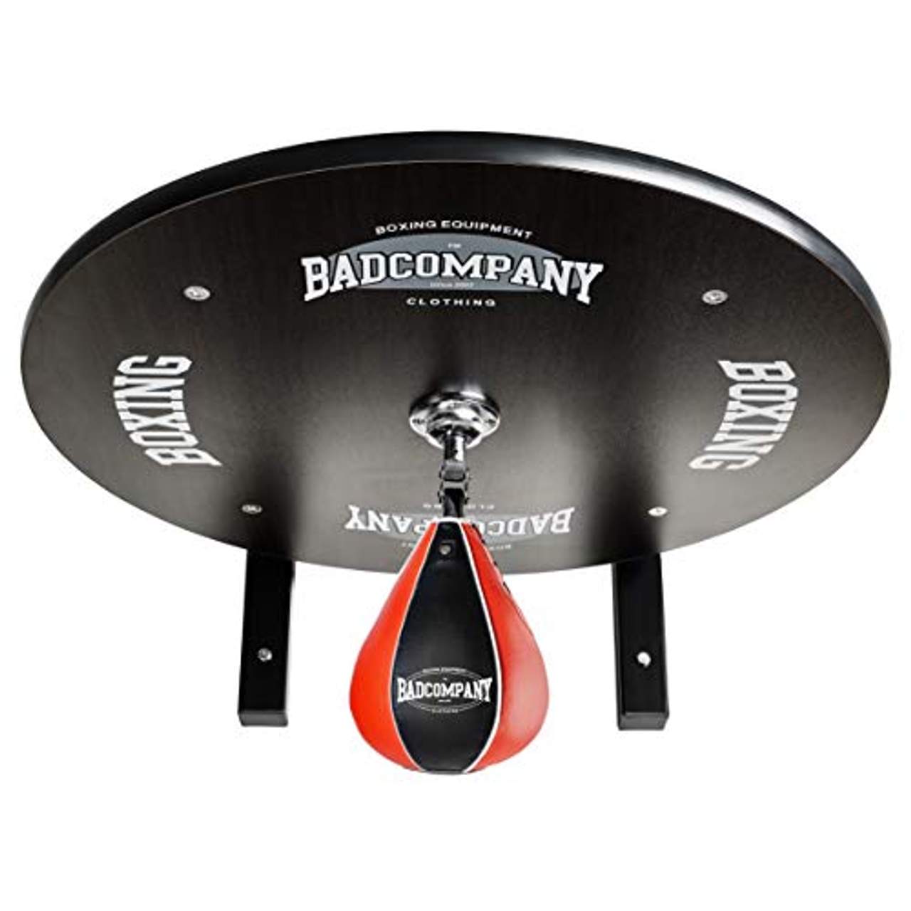 Dieses Supreme Speedball Plattform Set ist ein professionelles Qualitätsprodukt der Marke Bad Company. Es enthält ein drehbares Kugellager und einen PU-Boxball, beide in schwarz bzw. rot. Die Speedball-Plattform ist aus MDF-Holz mit einem Walnuss-Imitat-Finish und Kanten in schwarz gefaltet gemacht. Der Boxapparat ist für die Wandmontage konzipiert und der Ball ist aus hochwertigem und flexiblem Polyurethan gefertigt.