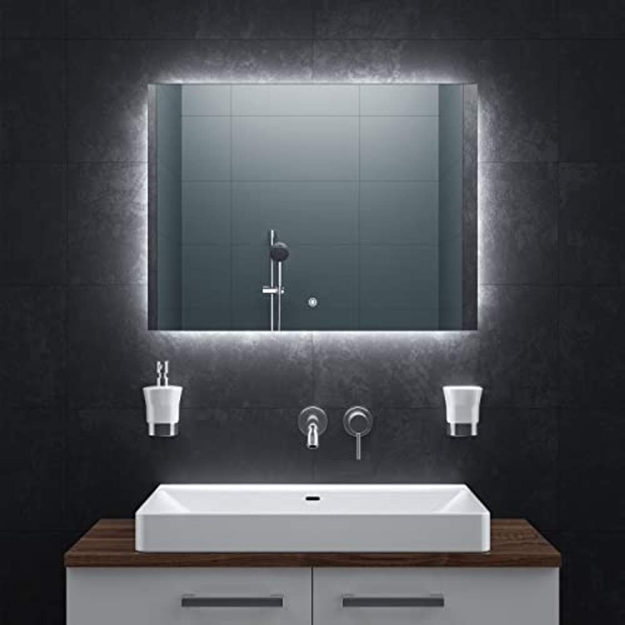 | LED-Beleuchtung | Ja LED Rahmenbeleuchtung. Sie können über den Touchsensor am Spiegel zwischen den 3 LED-Farben (warmweiß, neutralweiß & kaltweiß) bequem wechseln. |