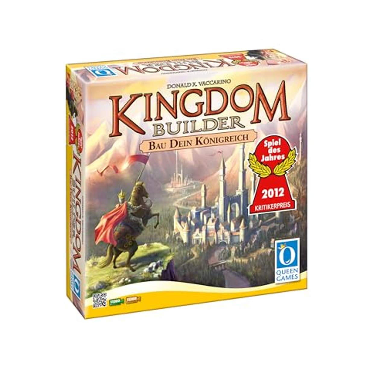 "Spiel des Jahres 2012 Kingdom Builder, Spiel des Jahres 2012" ist ein Brettspiel, das von Donald X. Vaccarino entworfen wurde und 2012 die prestigeträchtige Auszeichnung Spiel des Jahres gewonnen hat. Es ist ein Strategiespiel, bei dem die Spieler/innen verschiedene Geländetypen besiedeln müssen, darunter Wiesen, Wüsten, Blumenfelder und Waldgebiete.