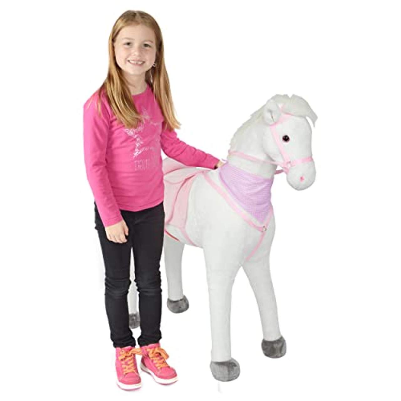 größere Kinder einen tollen Reitausflug machen. Das große Stehpferd wird mit Sattel und einem schicken Halstuch ausgeliefert.