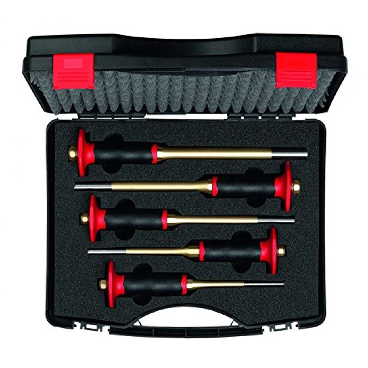 Knipex 9R 425 154 0 Splintentreibersatz 5-tlg im KofferChrom-Vanadium-Stahl durchgängig vergütet. Arbeitsende poliert. Schafft lackiert inklusive Handschutz. Die großen Splintentreiber für den Einsatz im Maschinenbau, bei Baumschinen und vielen anderen Anwendungen.
