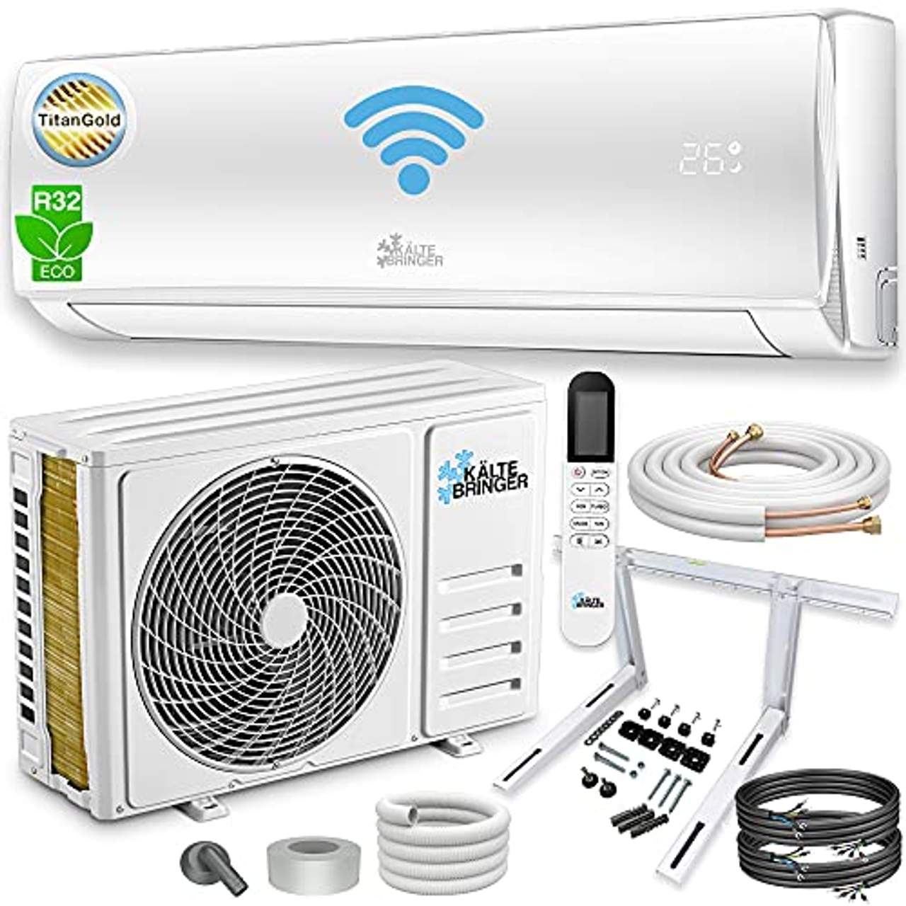 Kältebringer Split Klimaanlage Inverter Klimagerät ist eine Marke von Kältebringer Split Klimaanlage Inverter Klimagerät. Sie ermöglicht es Nutzern, mit einem 4in1-System zu kühlen, zu heizen, zu lüften und zu entfeuchten. Dank des WiFi-Moduls kann sie über eine App oder vernetzte Heimsysteme wie Amazon Alexa gesteuert werden. Es hat die Emissionsklasse A++, R32 Kühlmittel und Invertertechnologie. Außerdem verfügt es über ein leistungsstarkes Splitgerät mit 12000 Btu. Außerdem hat es eine Schlaffunktion, die das Raumklima mit nur 19 dB kühlt und damit sehr leise ist. Im Lieferumfang enthalten sind 1x Split-Klimagerät, 1x Wandhalterung inkl. Montagezubehör, 5m isoliertes Kupferkabel und 1x Fernbedienung.
