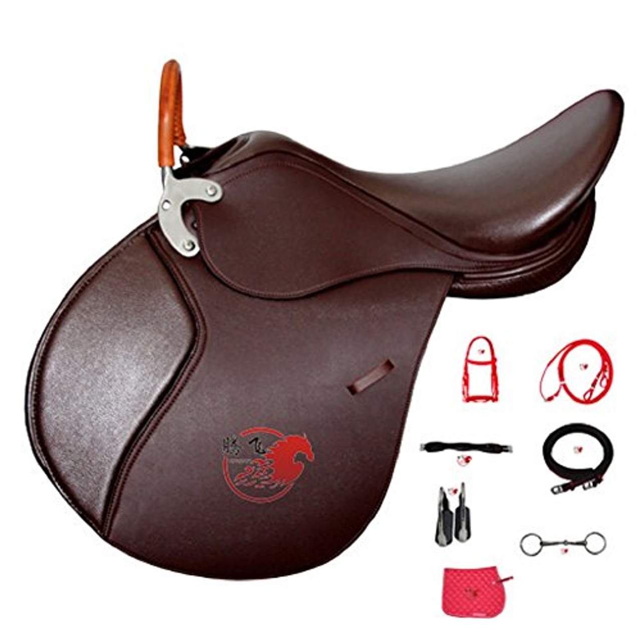 Bei diesem Produkt handelt es sich um einen Springsattel namens „Reitsattel Leder Pferdesattel-Set Ledersattel Pferde-Sattel Springsattel“ der Marke AKAUFENG. Er besteht aus einer Sattelfläche und einem Sattelbaum aus strapazierfähigem und leicht zu reinigendem Kunststoff sowie Nylon-Gurtbändern. Diese Eigenschaften machen es perfekt für das Reiten Pferde sicher und bequem.