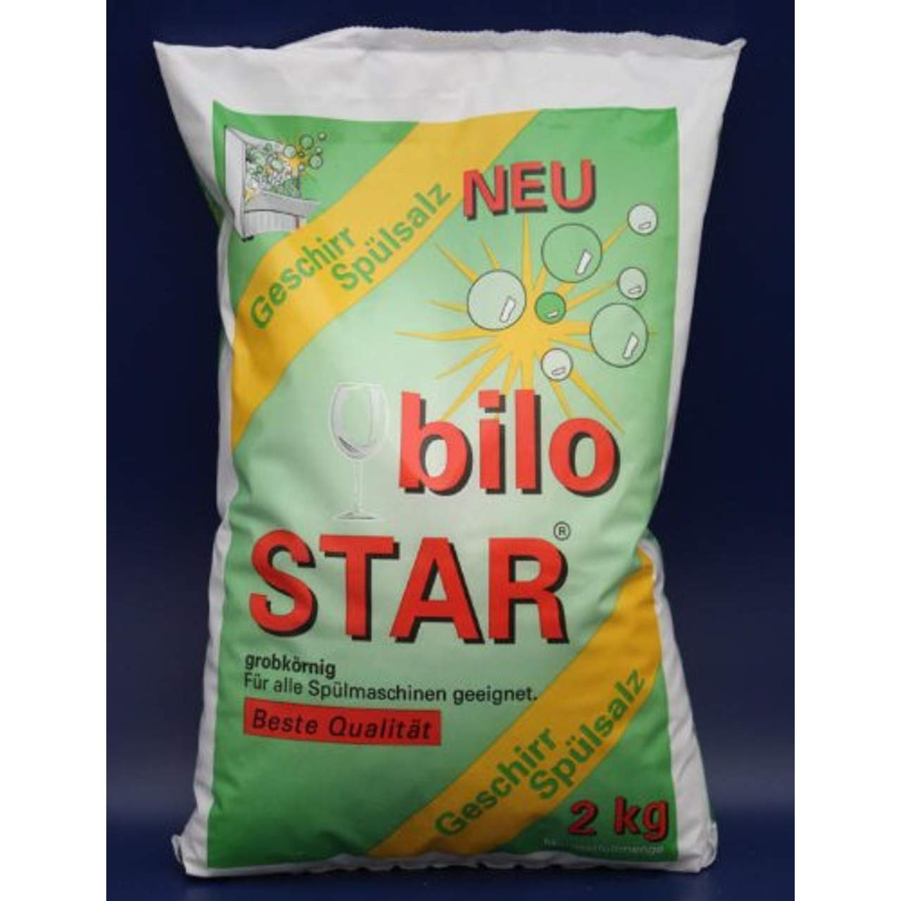 Wasserrose 12kg Spülsalz FÜR Alle GESCHIRR-SPÜLMASCHINEN Bilo Star GrobkörnigPreis per Set inklusive MehrwertsteuerSie erwerben hier einen Karton Spülsalz mit 6 Beuteln a 2 kg = insgesamt 12 kgBeste Qualität für hervorragende Spülergebnisse.Regeneration von Filtern.Spezialregenerier Salz grobkörnig.Kalkschutz für alle Geschirrspülmaschinen mit Wasser- Enthärtungsanlagen.Rückstandsfrei löslich. Schont die Spülmaschine.Bilo STAR ist ein voll-lösliches Siedesalz und daher hervorragend zur Anwendung in allen Geschirrspülmaschinen geeignet. Es hält die Wasser-Enthärtungsanlage Ihrer Spülmaschine aktiv und schützt Geschirr, Gläser und Maschine vor gefährlichen Kalkablagerungen. Das Salz entspricht in Bezug auf die wichtigen Kriterien der Löslichkeit und Lösegeschwindigkeit der für Regenerier-Slaze geltenden DIN 19604.Anwendung: Bilo STAR entsprechend den Angaben des Geräteherstellers Ihrer Spülmaschine in den Salz-Vorratsbehälter einfüllen.Achtung: Verwenden Sie für Ihre Spülmaschine kein normales Speisesalz. Bilo STAR ist nicht für den menschlichen Genuss geeignet und darf zur Herstellung von Lebensmitteln nicht verwendet werden.Hochwertige Qualität und Verarbeitung.NEUWARE und originalverpackt.