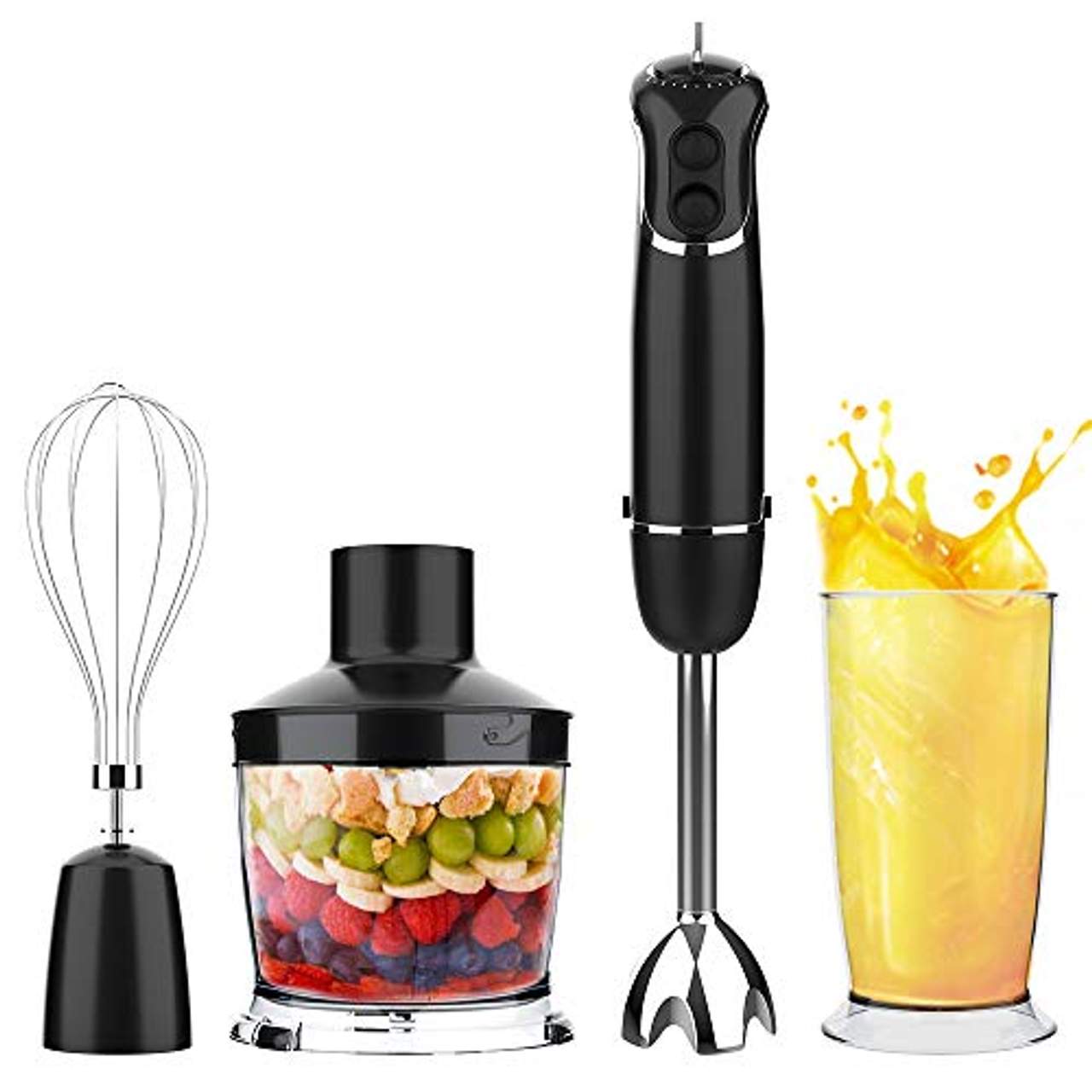 - 4-in-1-Mixstab: Dieser Mixer verfügt über einen Mixstab, einen Schneebesen, eine 500-ml-Schüssel mit S-förmiger Klinge und einen 600-ml-Becher für die einfache Zubereitung von Speisen.
