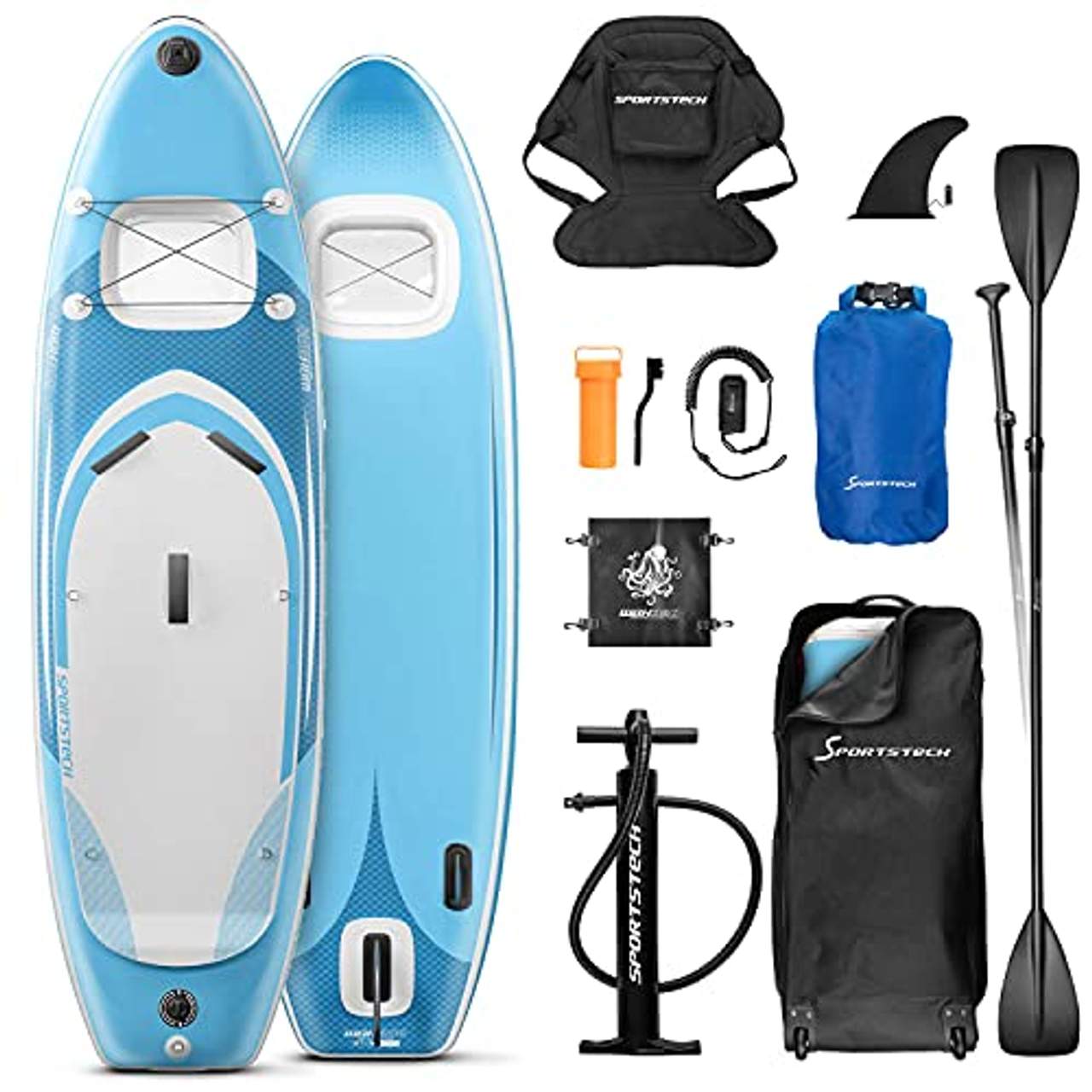 - All-Inclusive: Dieses Produkt wird mit 9 Must-Haves geliefert, darunter eine Transporttasche, eine Luftpumpe, ein Kajaksitz, ein verstellbares Paddel, eine Sicherheitsleine, ein Schnellreparaturset mit Pvc-Flicken, eine Flosse, ein Trockensack und eine Sichtfensterabdeckung. Damit ist sichergestellt, dass der Benutzer alles hat, was er braucht, um sein SUP-Erlebnis zu genießen, ohne sich um den Kauf zusätzlicher Artikel kümmern zu müssen.