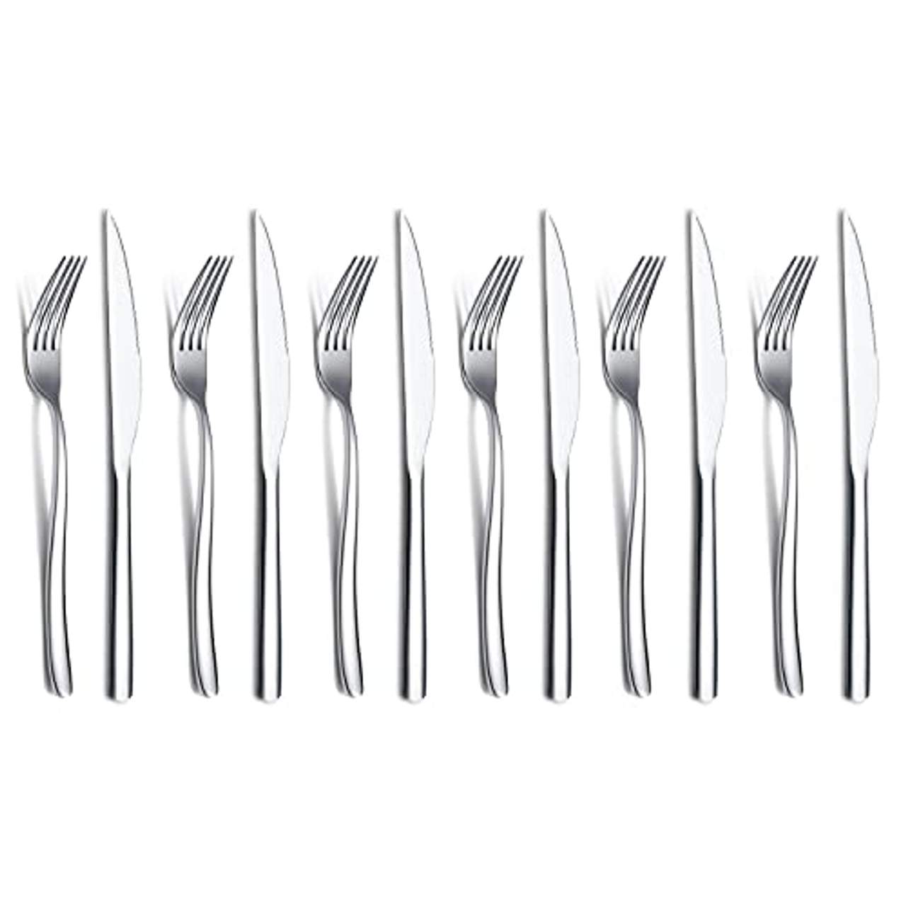Das HOMQUEN Steakbesteckset besteht aus einem Set von 6 Steakmessern und 6 Tafelgabeln.