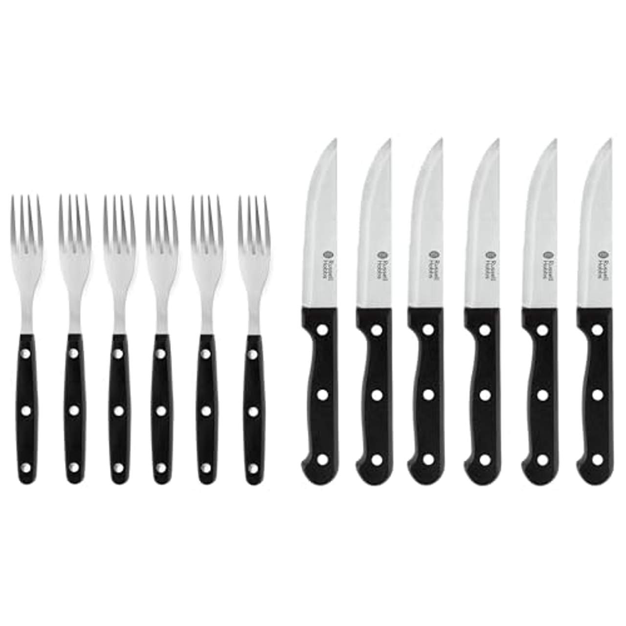 Das Russell Hobbs Steakbesteck besteht aus 12 Teilen - 6 Steakmessern und 6 Gabeln. Das bedeutet, dass du genug Besteck für bis zu 6 Personen hast, was es perfekt für Familienfeiern oder Dinnerpartys macht.