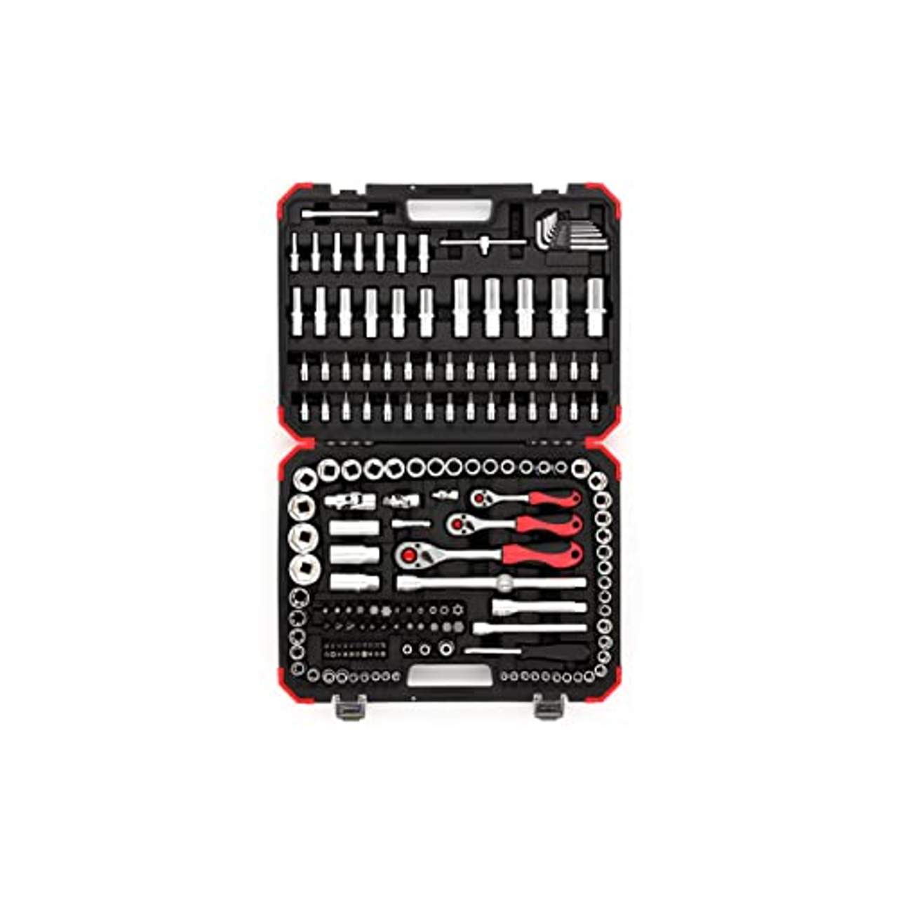 - Umfassendes Set: Dieses Set enthält 172 Teile, die mit Klemmen gesichert und passgenau, griffbereit und übersichtlich in einem stabilen Kunststoffkoffer im roten Design von Gedore untergebracht sind, damit Sie alle benötigten Werkzeuge leicht erreichen und organisieren können.