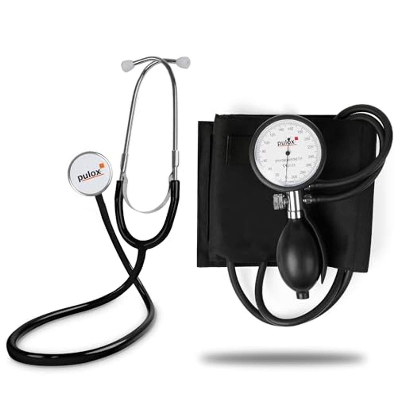 pulox Flachkopf-Stethoskop & manuelles Aneroid Blutdruckmessgerätpulox Flachkopf-Stethoskop &, manuelles ANEROID BlutdruckmessgerätDas Set bestehend aus dem pulox Flachkopf-Stethoskop und dem ANEROID Blutdruckmessgerät eignet sich ideal für Ärzte, Krankenpflegerinnen und -pfleger. Doch auch im Heimgebrauch ergänzen sich die die beiden Markengeräte perfekt. Sie funktionieren ganz ohne Elektronik und sind somit immer und überall schnell einsatzbereit.pulox Stethoskop Flachkopf in schwarz:Professionelles Stethoskop zum Abhören der Atemwege und der Herzgeräusche sowie zum Messen des Blutdrucks.Die Schlauchlänge beträgt 55 cm und das Bruststück verfügt über einen Durchmesser von 45 mm. Mit seinen knappen 75 Gramm ist es extrem leicht und handlich. Durch seine hohe akustische Empfindlichkeit sowie die deutliche Geräuschübertragung, eignet sich das pulox Flachkopf-Stethoskop optimal für Blutdruckmessungen und stellt ein ideales Werkzeug für für Ärzte, Krankenpfleger und Krankenschwestern dar.Manuelles Blutdruckmessgerät von pulox:Mit dem Blutdruckmessgerät messen Sie schnell und einfach den arteriellen Druck am Oberarm.Das pulox Aneroid Blutdruckmessgerät mit Manometer und bequemer, verstellbarer Manschette verfügt über ein großes Zifferblatt, von dem sich die präzisen Messwerte leicht ablesen lassen - ganz ohne komplizierte Elektronik. Inklusive der praktischen Reißverschlusstasche zur Aufbewahrung wiegt das kompakte pulox Blutdruckmessgerät gerade einmal 360 g und lässt sich in jeder Sanitäts- oder Notfalltasche problemlos verstauen.