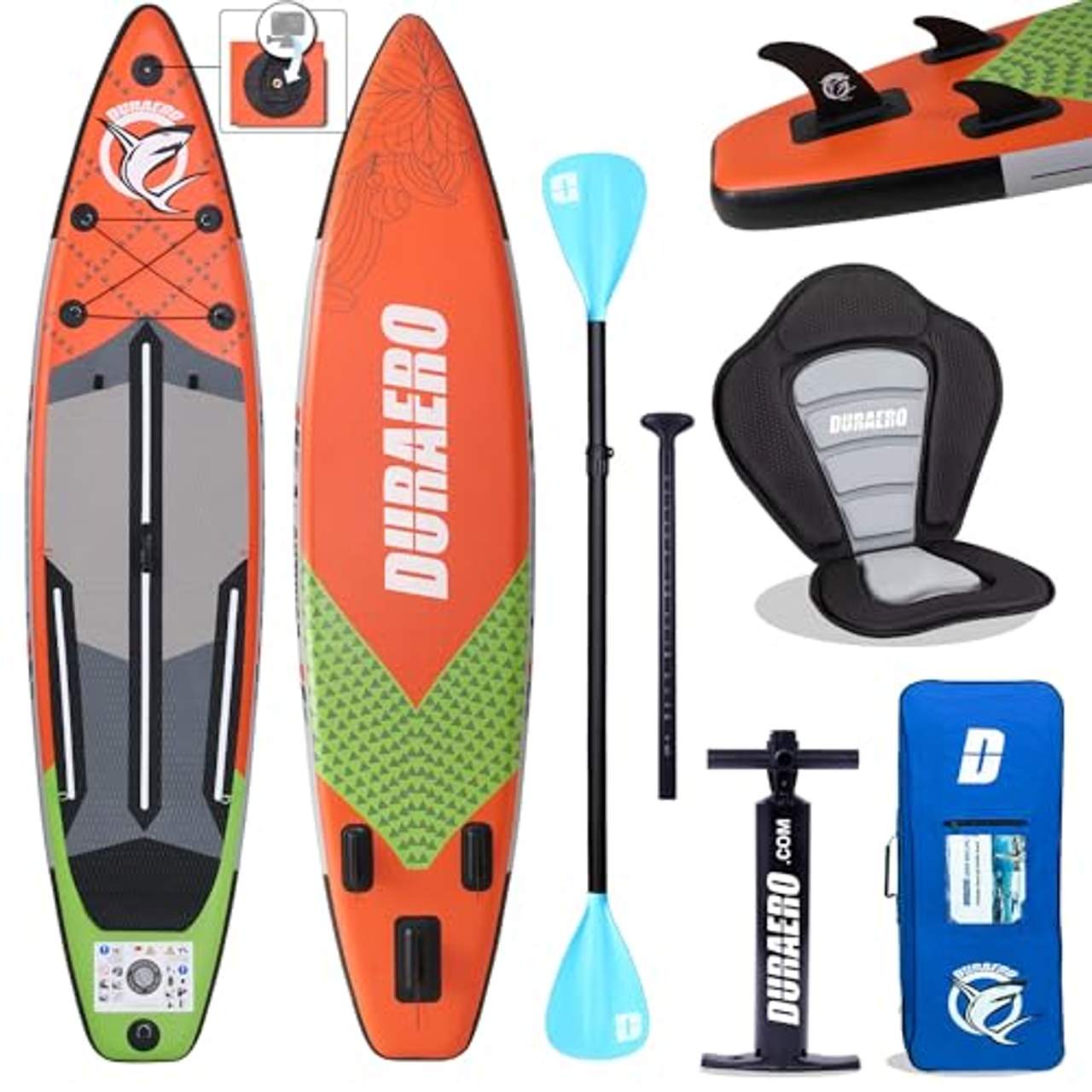 - Stabile Kamerahalterung: Das "Aufblasbare SUP Board Set Stand Up Paddle Board Premium Surfboard" bietet den Vorteil einer stabilen Kamerahalterung, an der die Nutzer ganz einfach eine Action-Kamera befestigen können, um ihre Bewegungen beim Paddeln aufzuzeichnen. Diese Funktion verbessert das Gesamterlebnis, indem sie es den Nutzern ermöglicht, ihre Abenteuer auf dem Wasser festzuhalten und neu zu erleben, bleibende Erinnerungen zu schaffen und ihre Erfahrungen mit anderen zu teilen.