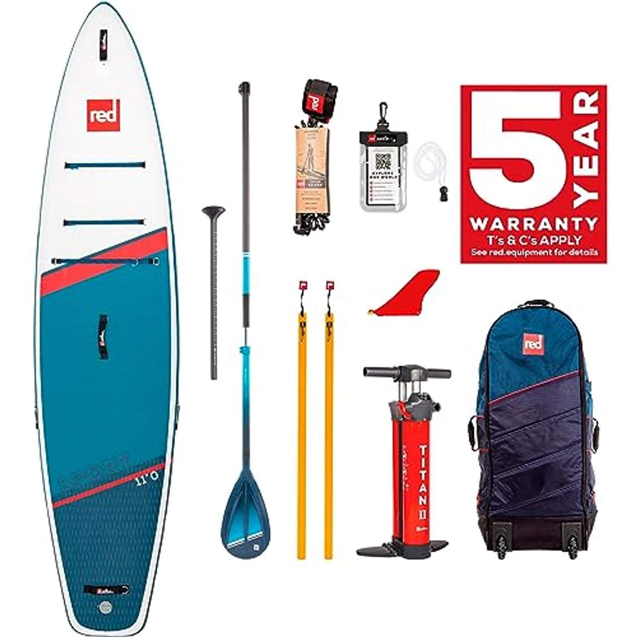 Red Paddle Co SUP-Board-Set Sport 11'0" x 30" x 4,7" MSLSUP-Set bestehend aus Board, 3-teiligem Hybrid Tough 3-Piece Paddel, Titan II-Pumpe; Reparatur-Set, wasserdichte Handyhülle, Finne, RSS-Battens und RedPaddleCo. Leash; aufblasbares Board für Geschwindigkeiten und Performance; für erfahrene Paddler geeignet; Speed Tail; gummierter Rand; strapazierfähige Finne; verbesserte RSS-Versteifung; komfortables Gepäcksystem; Titan II-Pumpe; All-Terrain-Rucksack mit innovativem Gurt-Tragesystem und Rollen; Maße (L/B/H): ca. 11’’ (335 cm) x 34’’ (86 cm) x 4,7’’ (12 cm); Volumen: ca. 234 l; Gewicht: ca. 10,5 kg; belastbar bis 90 kg.
