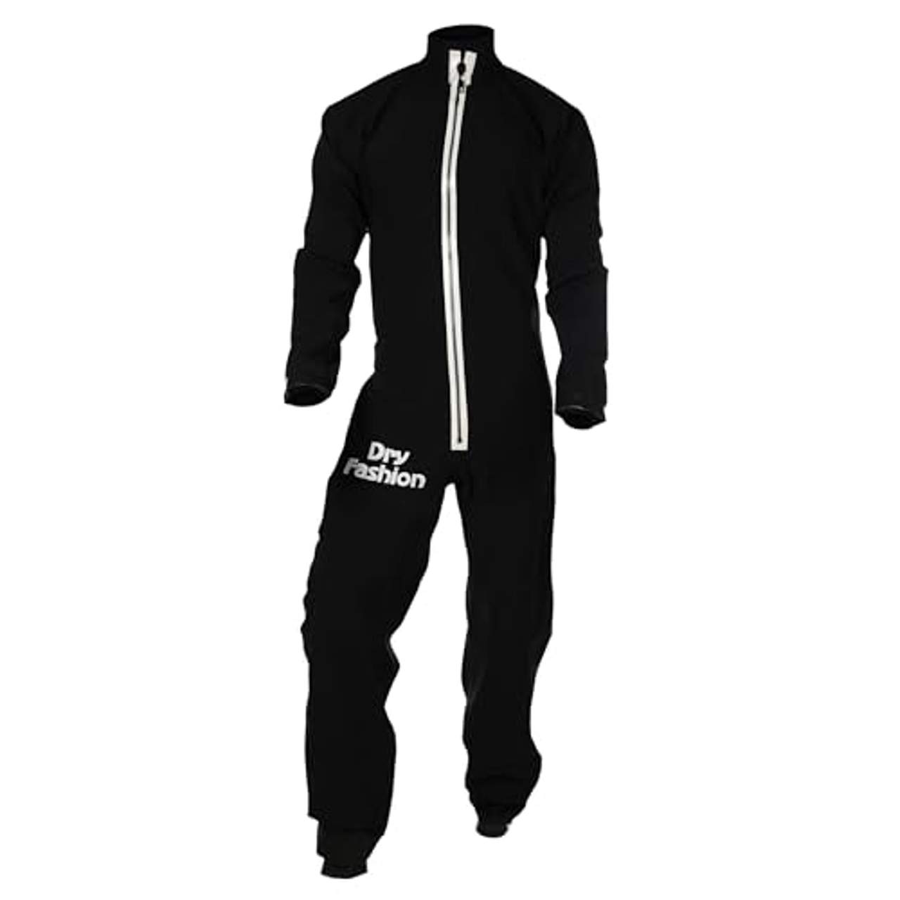 Dry Fashion Unisex Dry Suit SUP-Advance Pro+ ist ein Trockenanzug für Segelaktivitäten. Er verfügt über die DFX4-Way-Stretch-Technologie, 3-Lagen-Material mit 100 % Nylon und Polyester als Außen- bzw. Innenschicht. Der Anzug hat einen Neopren-Halsabschluss, Armabschlüsse, Latex-Fußabschlüsse, eine verstellbare Taillenregulierung durch Klettverschluss, einen YKK-Frontreißverschluss und ein verlängertes Rückenteil für zusätzlichen Komfort. Er ist in den Größen 164-XXL für Frauen, Männer und Kinder und in der Farbe Schwarz erhältlich. Reinigen Sie ihn nach dem Gebrauch mit frischem Wasser und lassen Sie ihn auf der Innenseite trocknen.