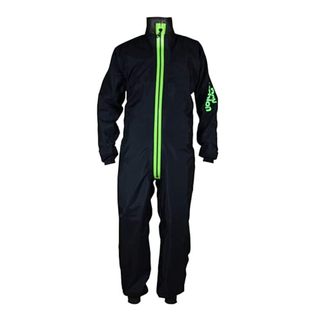 Dry Fashion Unisex Dry Suit SUP Advance ist wasserdicht, winddicht und atmungsaktiv. Er hat einen YKK-Frontreißverschluss, eine Innentasche mit Reißverschluss, Arm- und Fußmanschetten aus Latex sowie ein verlängertes Rückenteil. Das Material des Anzugs besteht außen aus 100% Nylon und innen aus 100% Polyester. Außerdem bietet er angenehmen Tragekomfort durch Neoprenbesatz am Hals und Latex-/Neoprenbündchen an Armen und Füßen. Die Größe variiert je nach Körpergröße, Brustumfang, Taillenumfang und Beinlänge. Um die Langlebigkeit des Trockentauchanzugs zu gewährleisten, sollte er sorgfältig gereinigt, gelagert und verwendet werden.