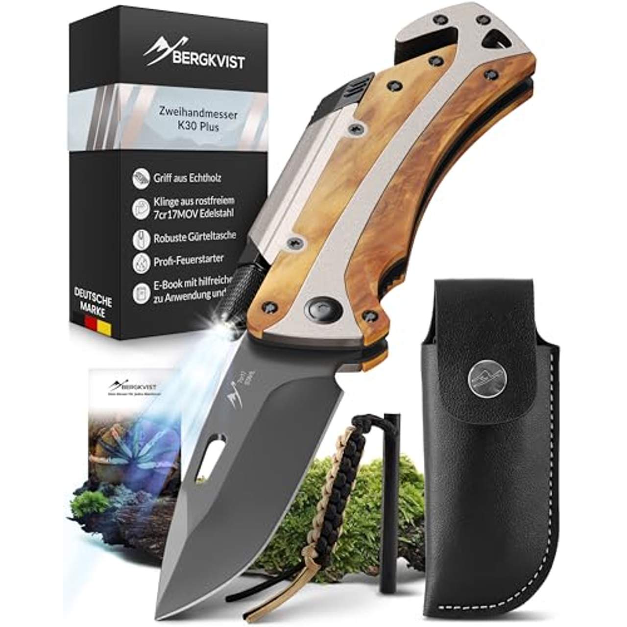 - Überlegene Qualität: Das BERGKVIST K30 Plus 5-in-1 Klappmesser ist aus rostfreiem Stahl und Echtholz gefertigt, was es unglaublich langlebig und zuverlässig macht.